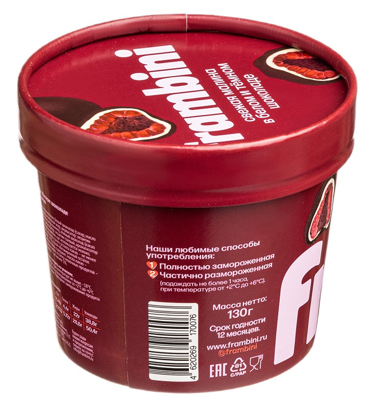 Малина Frambini в белом и темном шоколаде замороженная, 130г