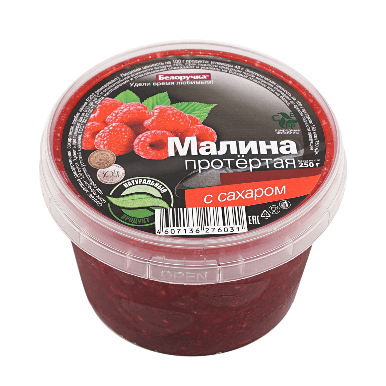 Малина Белоручка протертая с сахаром, 250г
