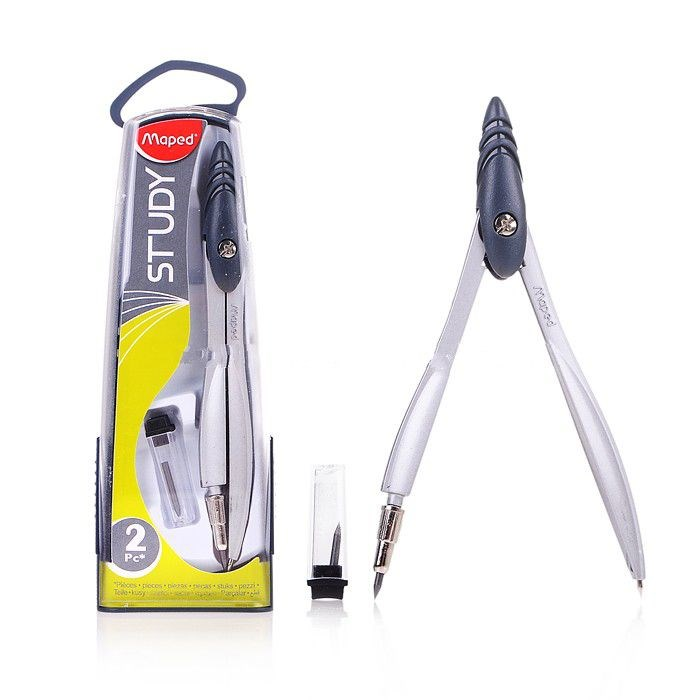 Циркуль Maped 2 мм с запасным грифелем предназначен для студентов, учеников средних и старших классов школы. Он изготовлен из легкого и прочного металлического сплава и снабжен эргономичной изогнутой головкой из ударопрочного пластика. Инструмент комфортно лежит в руке, надежно фиксируется на листе бумаги за счет остро заточенной иглы и хорошо удерживает заданный радиус. Циркуль упакован в удобный пенал из легкого пластика с прозрачной лицевой стороной, который упрощает переноску и хранение инструмента. Чтобы извлечь изделие из пенала, достаточно сдвинуть верхнюю крышку. Для этого требуется нажать на расположенные с двух сторон рифленые фиксаторы. В верхней части упаковки предусмотрена компактная петля для подвешивания. Помимо циркуля, в комплект также входят два сменных грифеля толщиной 2 мм, помещенные в отдельный компактный футляр.