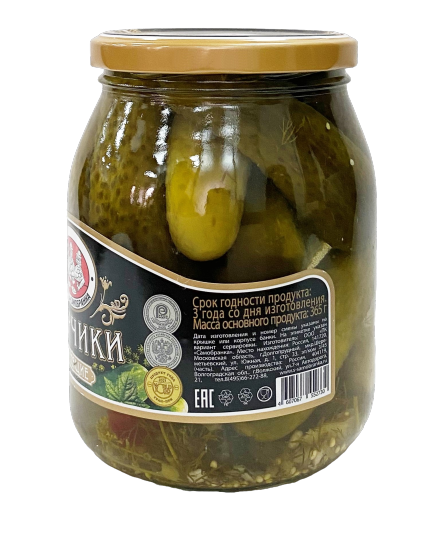Маринованные огурчики Скатерть-Самобранка украсят любой стол. Пикантные огурчики с остро-кисловатым вкусом могут стать самостоятельным блюдом или отличным ингредиентом для множества салатов. В России маринованные огурчики традиционно входят в состав новогоднего салата Оливье. Стеклянная банка имеет оригинальную форму бочонка и удобную крышку.