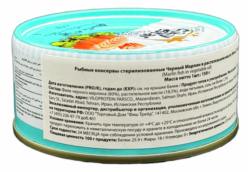 Филе черного марлина, растительное масло, вода питьевая, соль.