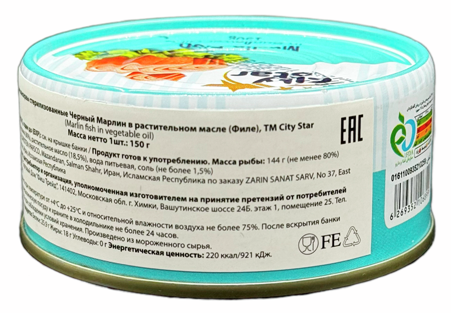 Марлин City Star черный филе в масле, 150г