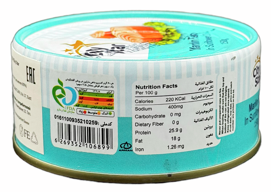 Этот деликатес станет настоящим украшением вашего стола, порадуя вас своим неповторимым вкусом и ароматом. Мясо черного марлина, известного своими полезными свойствами и нежным вкусом, бережно приготовлено в ароматном растительном масле. Каждая банка весом 150г содержит кусочки филе без косточек, что делает его удобным для употребления. Отсутствие ароматизаторов, усилителей вкуса и консервантов гарантирует натуральность и высокое качество продукта. City Star - это идеальный выбор для тех, кто ценит здоровое питание и желает побаловать себя настоящим деликатесом.