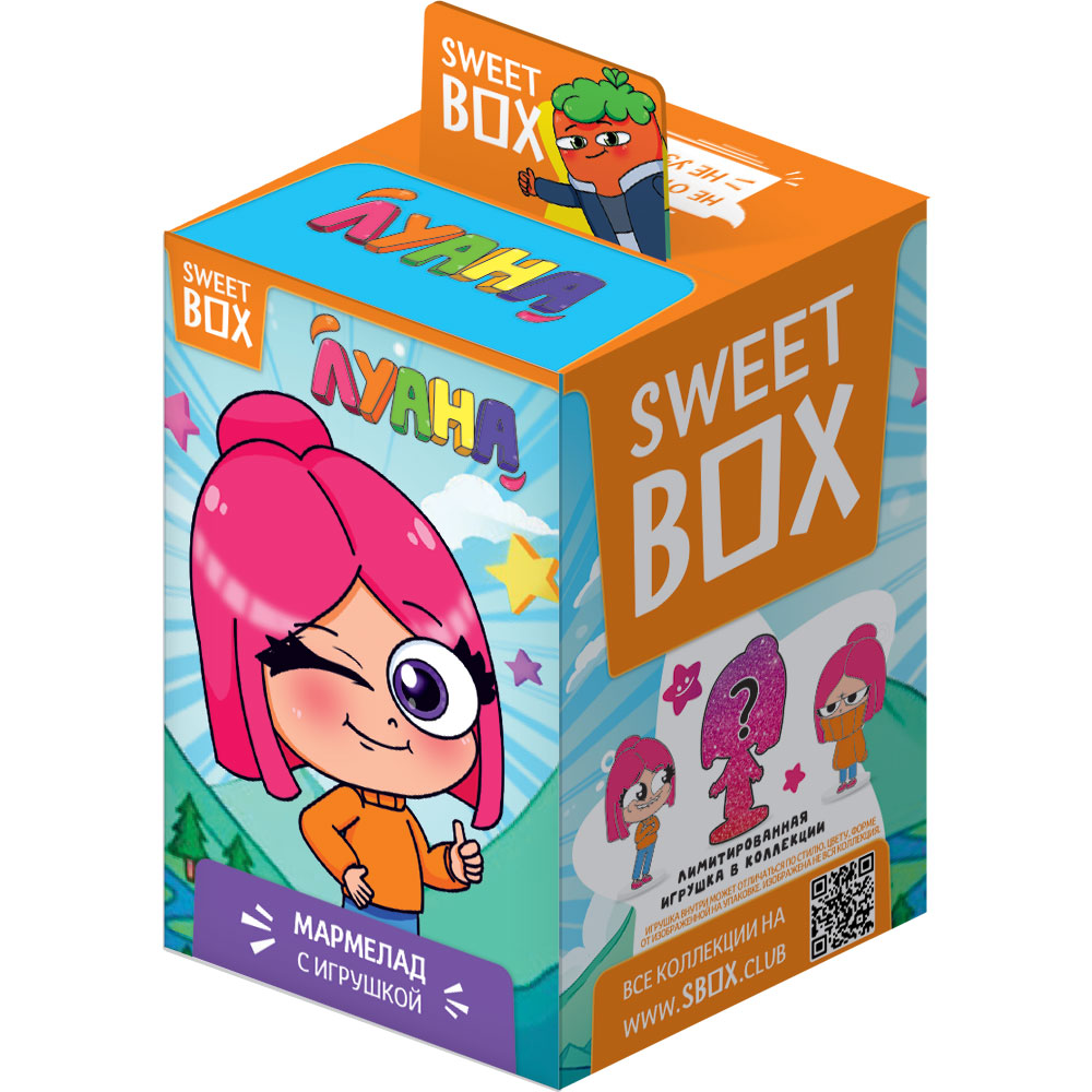 Коллекция Sweet Box Луана. В каждой коробочке вкусный мармелад с натуральным фруктовым соком подарок: игрушка, браслет. Коробочка с большой коллекционной игрушкой в виде любимого персонажа или другим приятным подарком (браслетом, брелоком, значком, пуллером), а также вкусная сладость - мармелад с натуральным соком. Яркая коробочка с любимым персонажем и вкусной сладостью обязательно понравится ребёнку и его родителям.