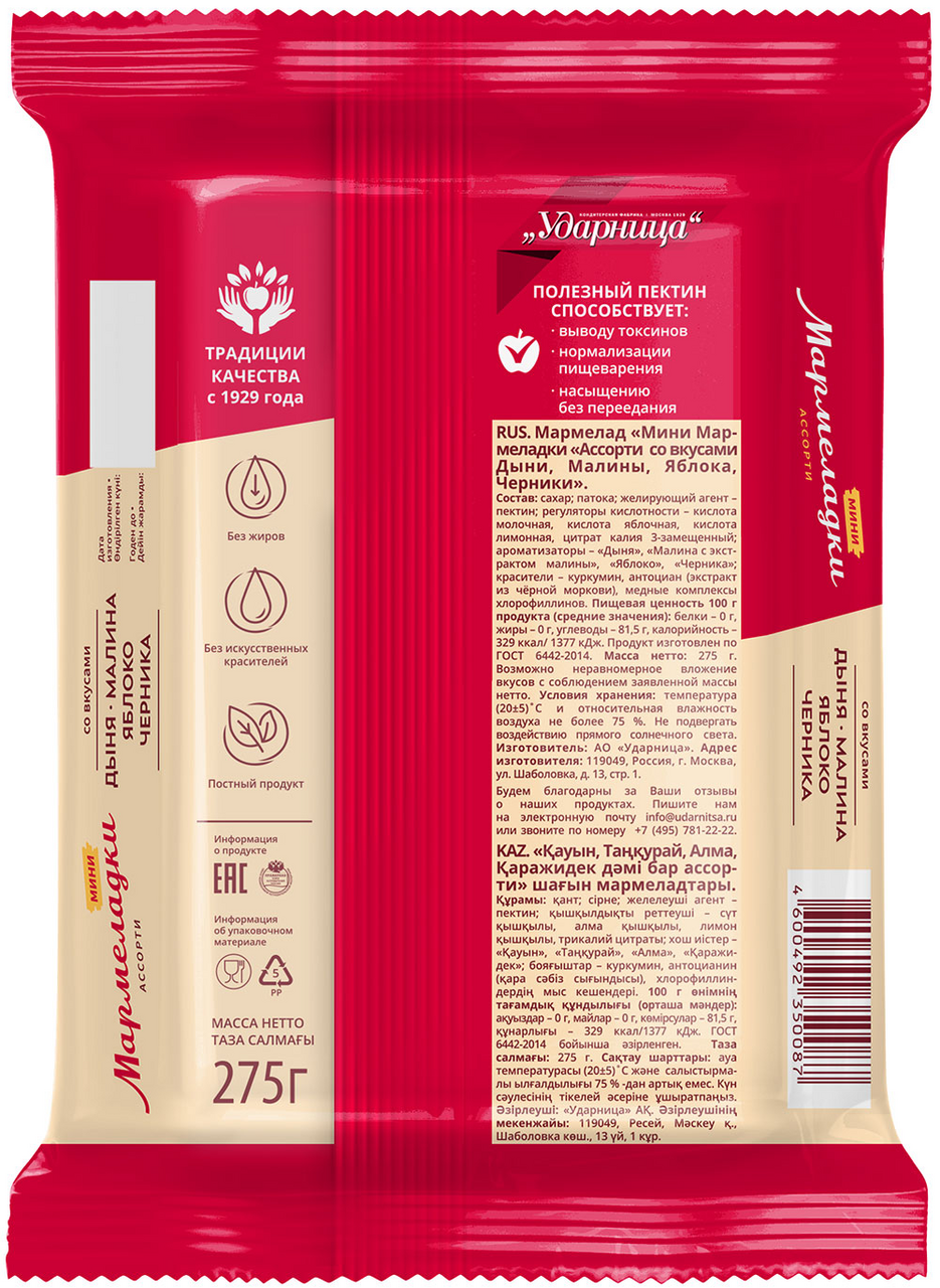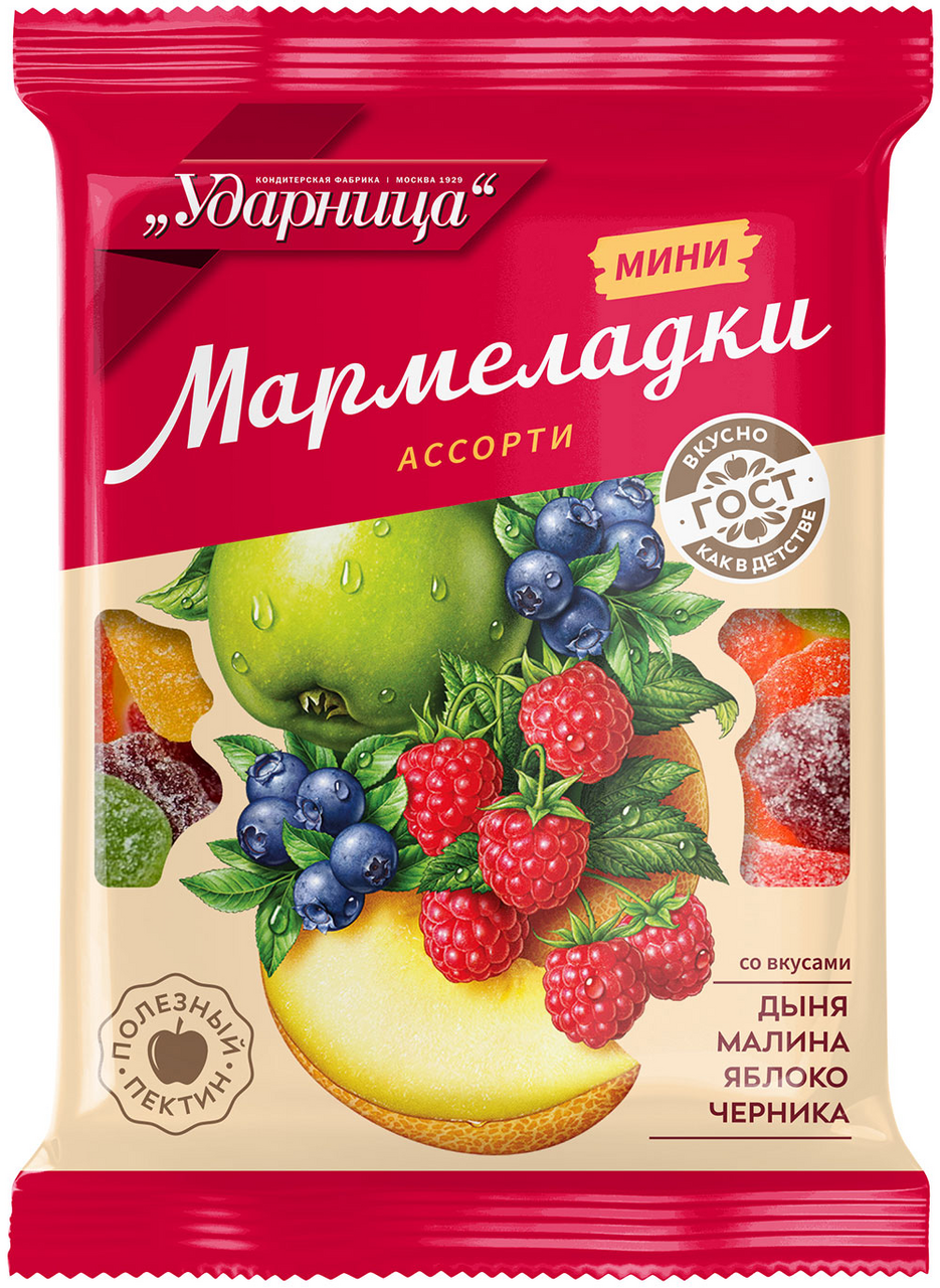 Мармелад Ударница Мини дыня-малина-яблоко-черника, 275г