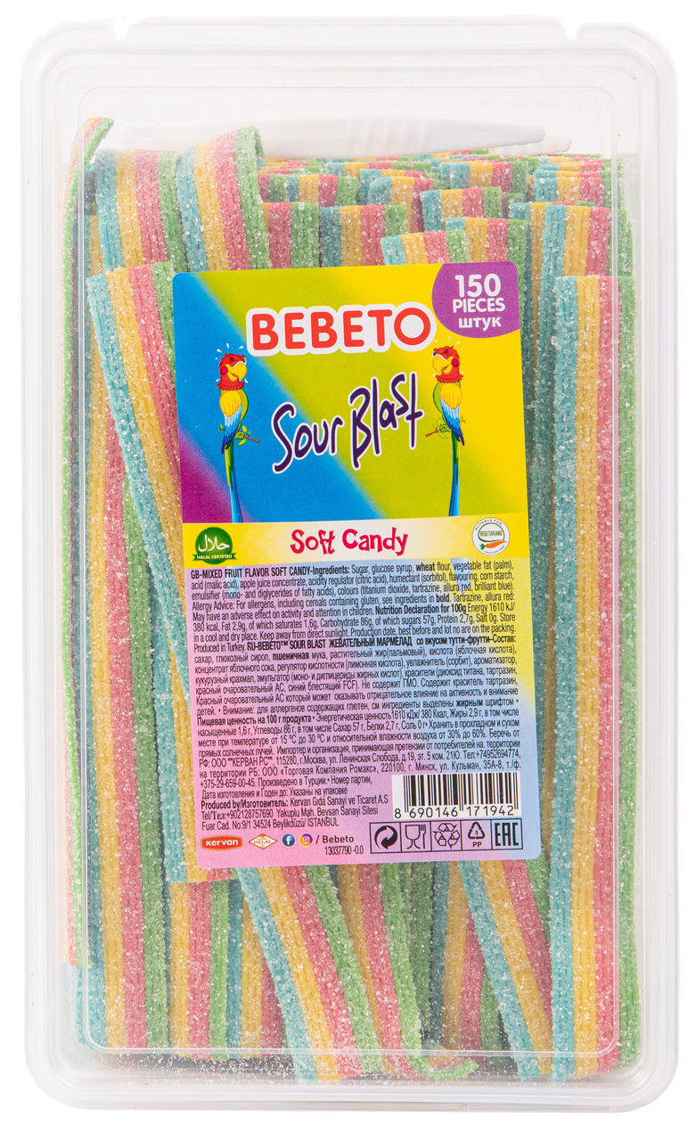 Мармелад жевательный Bebeto Sour Blast Тутти-фрутти 150шт, 1.2кг