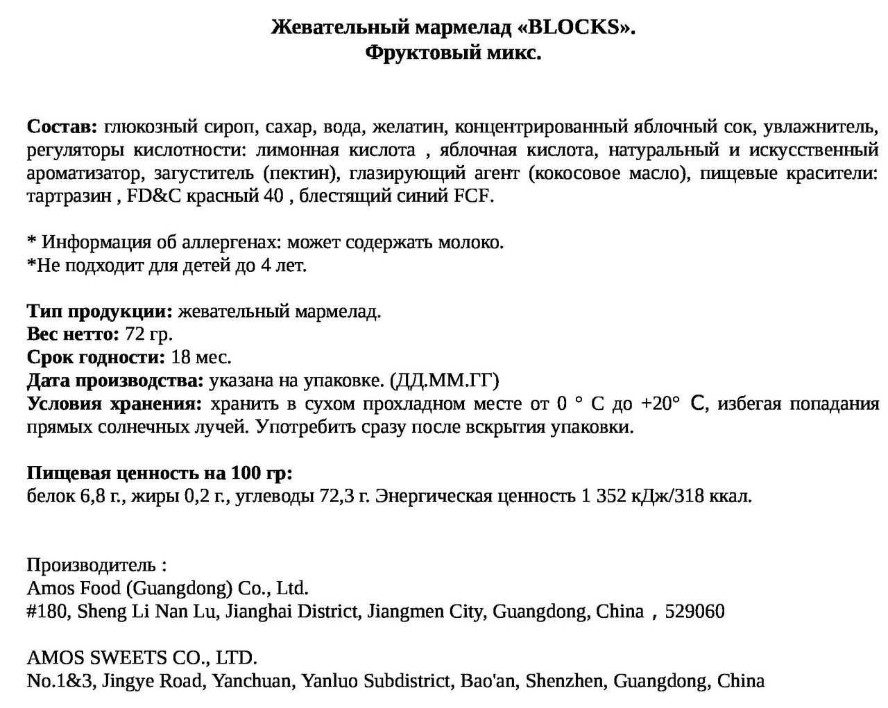 Мармелад жевательный Amos Blocks Фруктовый микс, 72г