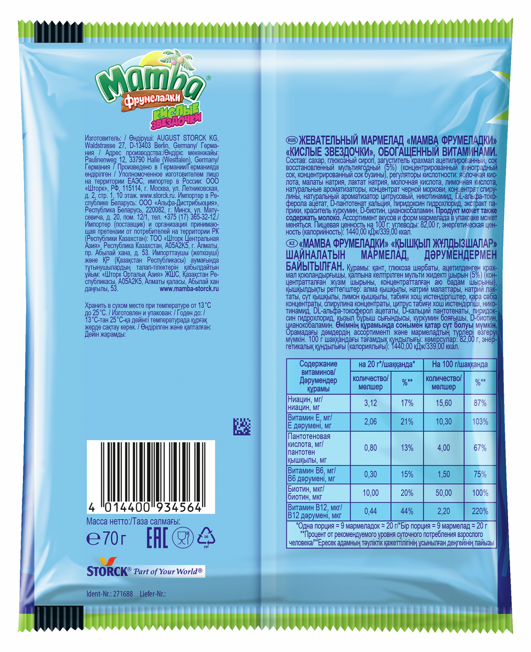 Mamba Фрумеладки - вкусные жевательные мармеладки c натуральным фруктовым соком и витаминами. Насладись их отличным вкусом и получи заряд веселья. Это легкий и вкусный лакомство, которое понравится как детям, так и взрослым. Фрумеладки Mamba обладают нежной и мягкой текстурой, которая плавно распадается во рту, даря неповторимое ощущение при каждом кусочке. Они идеально сочетают в себе сладость и кислоту, создавая вкусный и уникальный вкусовой букет.