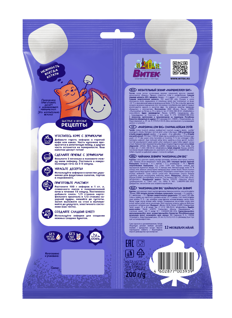 Маршмеллоу Витек Сладкий снег биг набор для жарки, 200г