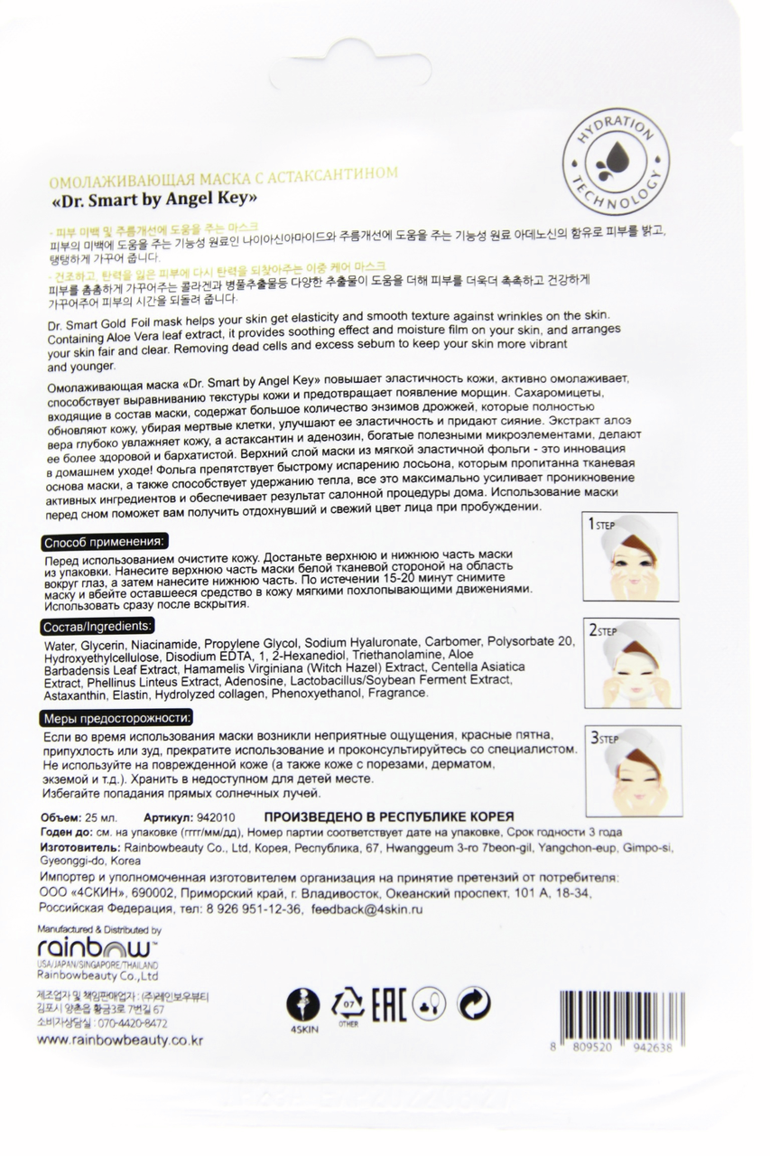 Маска для лица Dr.Smart by Angel Key Омолаживающая с астаксантином косметическая, 25г