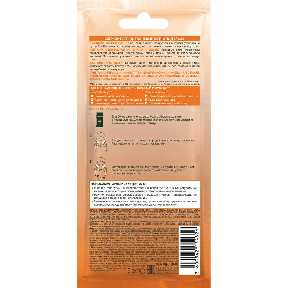 Патчи для глаз Garnier Увлажнение + свежий взгляд тканевые с гиалуроновой кислотой, 6г