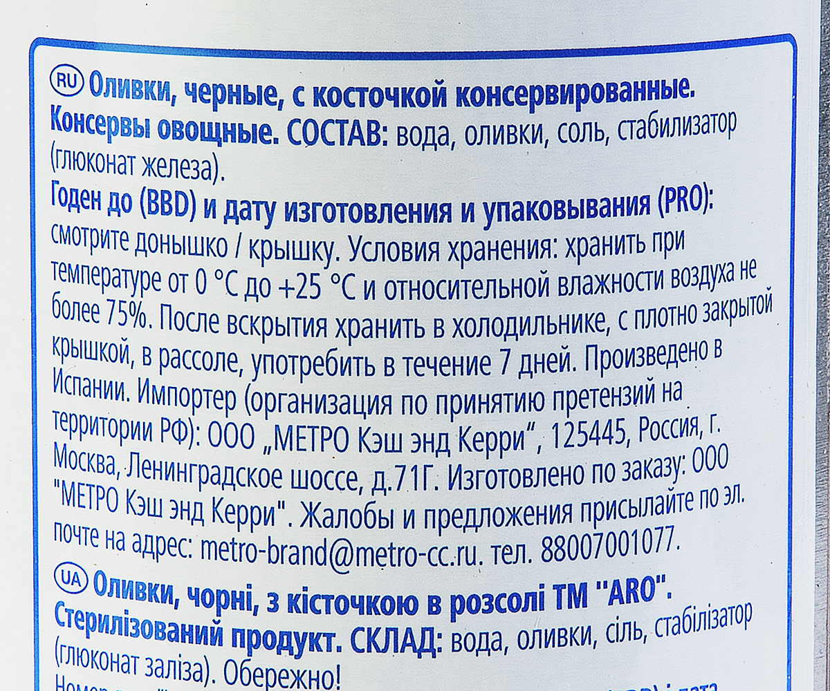 Вода, маслины, соль, стабилизатор (глюконат железа).