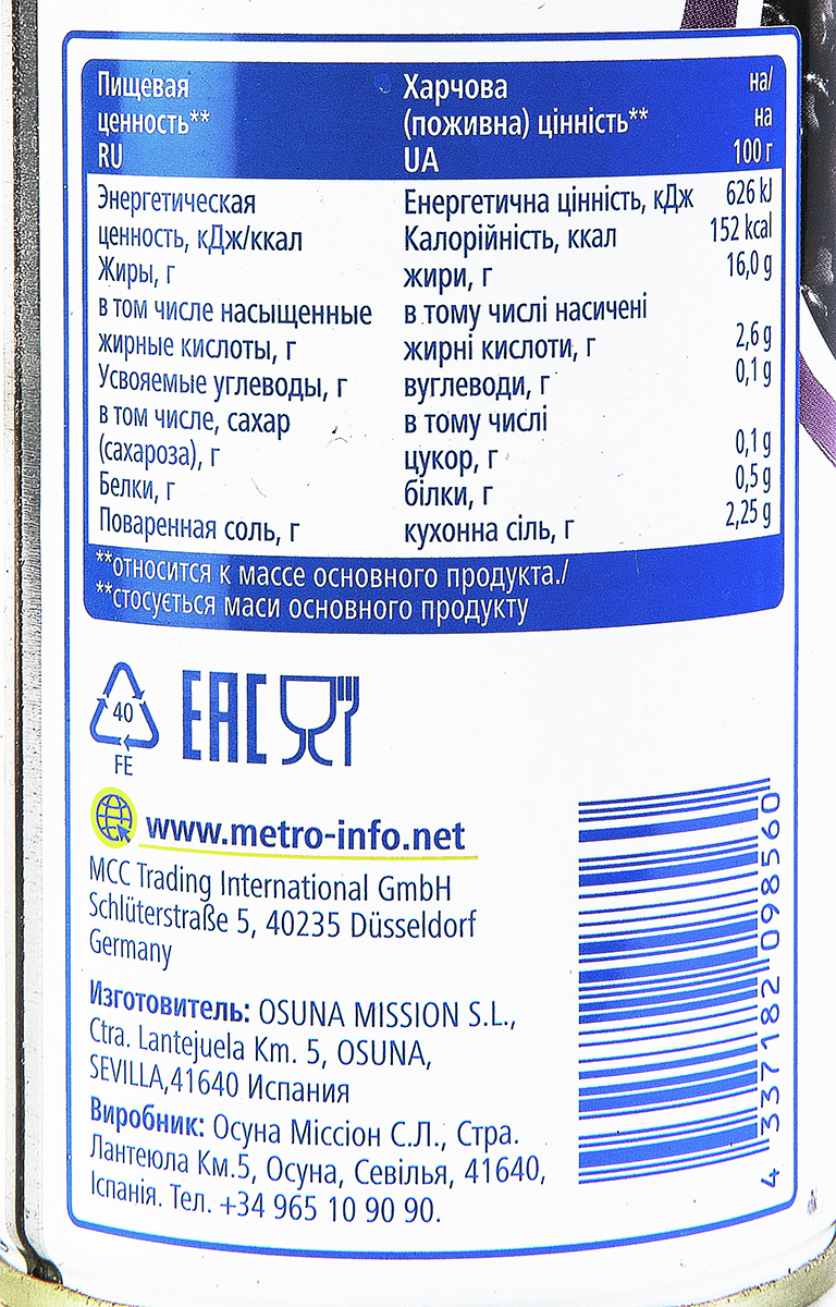 Маслины aro с косточкой, 300 г станут идеальным решением для профессионалов в кулинарии и для новичков. Чаще всего маслины используют для приготовления салатов, супов, сочетая с рыбными и мясными деликатесами. Это низкокалорийный продукт. Плоды оливкового дерева украшают любой праздничный стол. Кроме этого, они содержат массу полезных витаминов и микроэлементов, растительных белков и жиров. Такой продукт особенно рекомендуется при заболеваниях сердца, нехватке железа в организме и анемии. Маслины также хорошо регулирует работу кишечника. С их помощью фаршируют анчоусы, каперсы, корнишоны. Внутри жестяной банки находятся только цельные плоды.