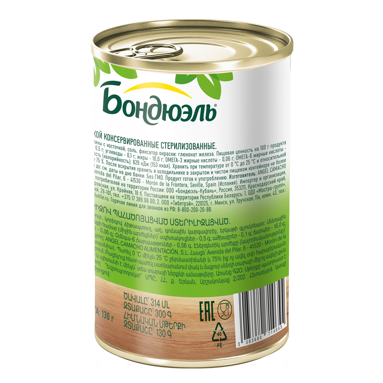 Маленькое солнечное испанское счастье - так можно описать вкус оливок Бондюэль. Это делает их незаменимым дополнением к сырам, вину, а также самостоятельным стартером или закуской. В банку, в которой вы никогда не найдете лишней воды, попадают только тщательно отобранные по размеру, зрелые плоды со сбалансированным вкусом.