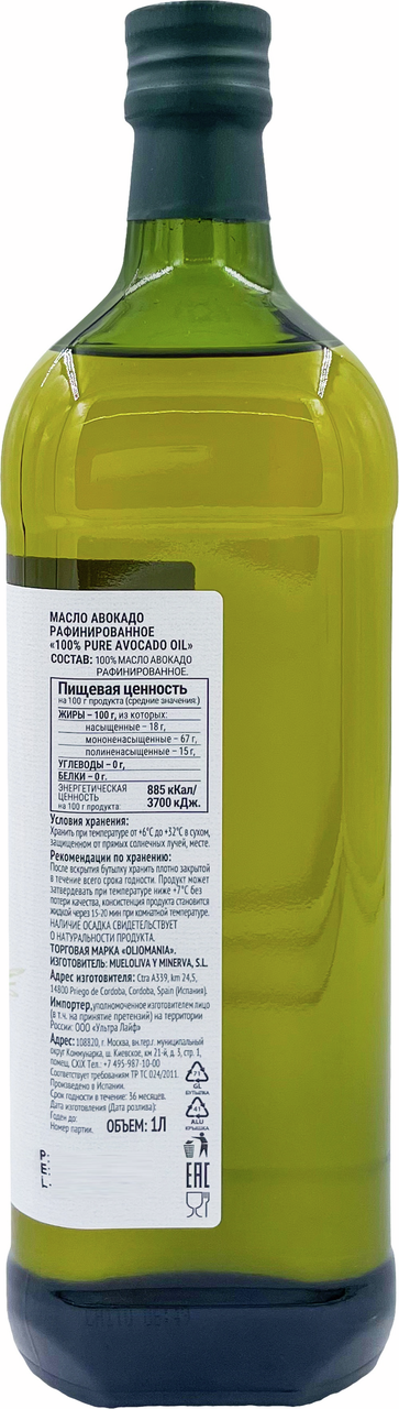 Это продукт, полученный путем очистки сырого масла авокадо, которое проходит процесс фильтрации и удаления примесей, запахов и вкуса. Это позволяет сохранить такие полезные свойства масла, как высокое содержание мононенасыщенных жирных кислот, витаминов и антиоксидантов. Запах и вкус практически отсутствуют, что делает его оптимальным выбором для кулинарии, где важно подчеркнуть вкус основного продукта. Температура дымления высокая (около 270С), поэтому масло можно использовать для жарки, запекания и других видов термической обработки, сохраняя при этом его питательные свойства. Подходит для тушения, приготовления соусов и заправок. Масло авокадо - здоровая альтернатива другим маслам.