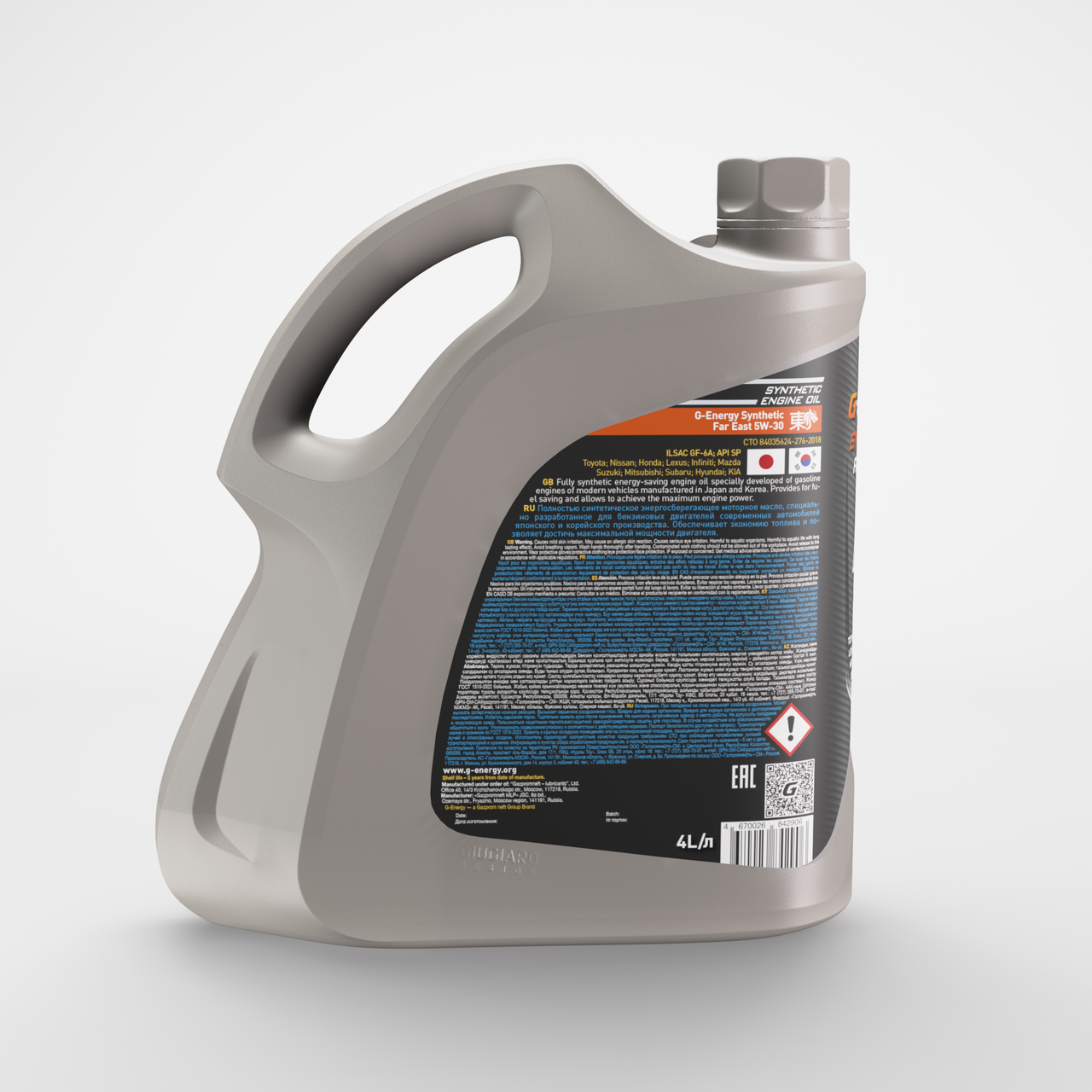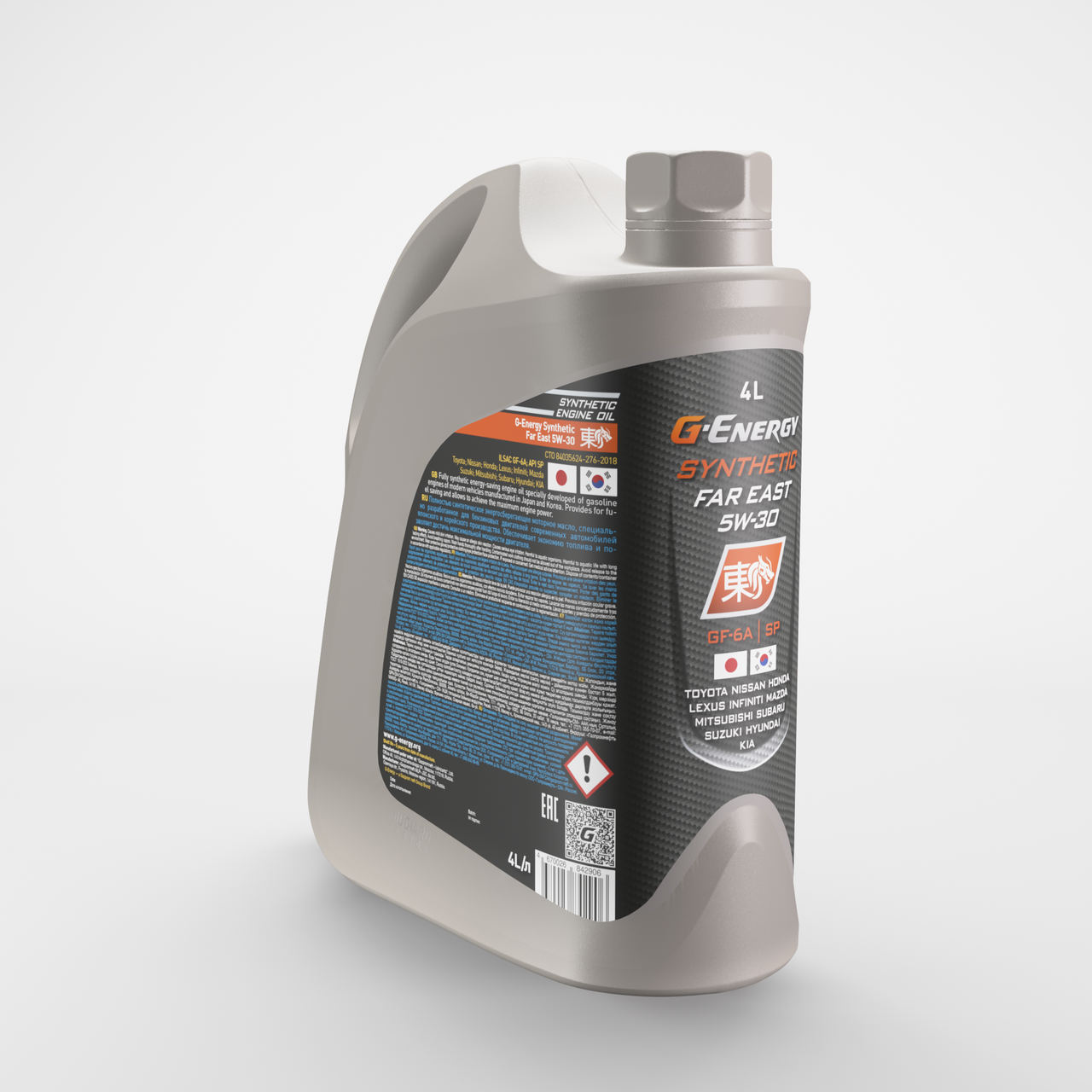 Масло моторное G-Energy Synthetic Far East 5W-30, 4л - энергосберегающее синтетическое моторное масло на основе базовых компонентов G-Base. Предназначено для бензиновых двигателей японских и корейских автомобилей. Обеспечивает экономию топлива, максимальную защиту и эффективную работу двигателя во всём диапазоне оборотов в различных скоростных режимах. Имеет лицензию ILSAC GF-5 и API SN.Для легковых автомобилей, легких внедорожников, микроавтобусов и легких грузовых автомобилей японских, корейских и других производителей. Для бензиновых двигателей, в том числе оборудованных катализаторами (TWC), где требуется вязкость SAE 5W-30 и уровень эксплуатационных свойств API SN/ILSAC GF-5. Преимущества:- Разработано специально для автомобилей японского и корейского производства.- Обеспечивает экономию топлива по сравнению со стандартными маслами. - Сохраняет чистоту деталей двигателя благодаря повышенной стойкости к образованию высокотемпературных отложений (на поршнях и в турбине). - Позволяет максимально реализовать мощность двигателя. - Полная совместимость и инертность по отношению к современным материалам уплотнений, предотвращение утечек.