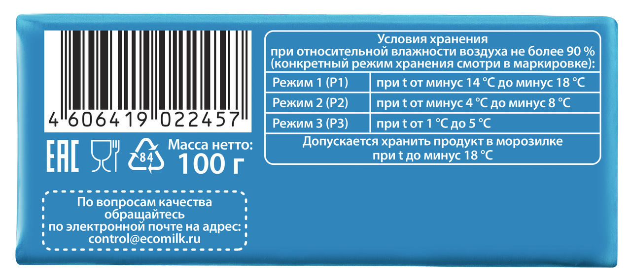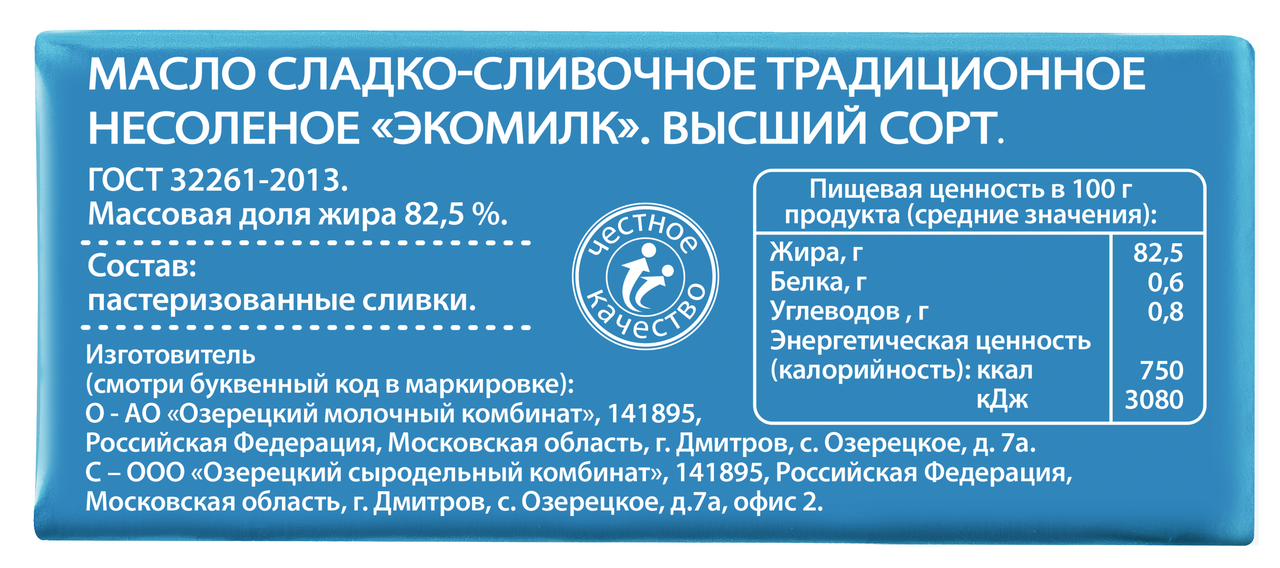 Масло сливочное Экомилк Традиционное ГОСТ 82.5%, 100г
