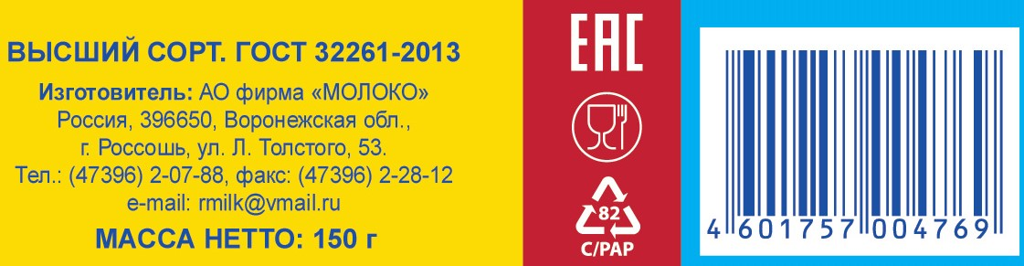 Масло сливочное Россошанский Крестьянское 72.5% 150г