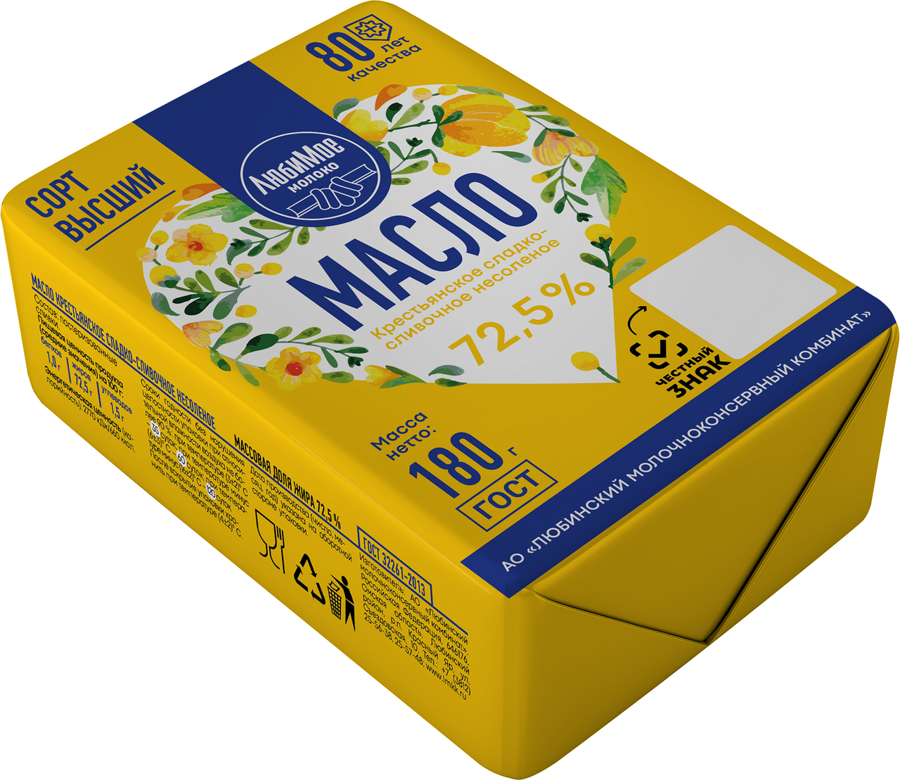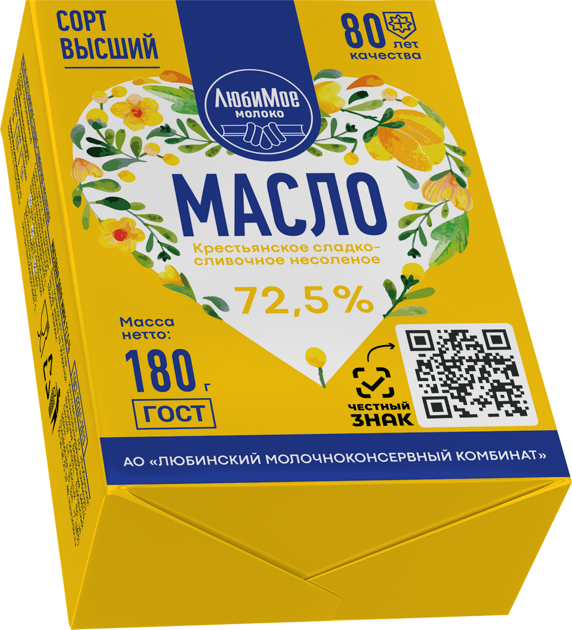 Масло сливочное Любимое молоко Крестьянское ГОСТ 72.5%, 180г