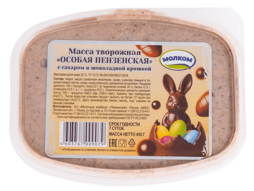 Масса творожная Молком Особая Пензенская с шоколадной крошкой 22%, 450г