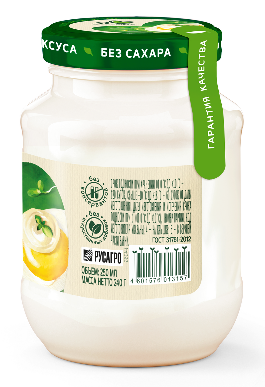Майонез с простым составом и натуральными ингредиентами. Без добавления сахара и уксуса, но с насыщенным вкусом классического майонеза.