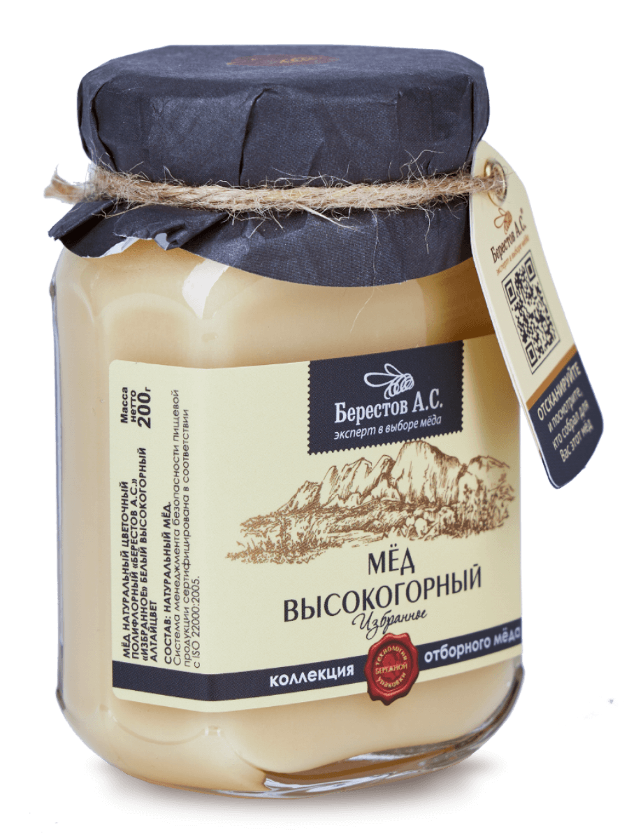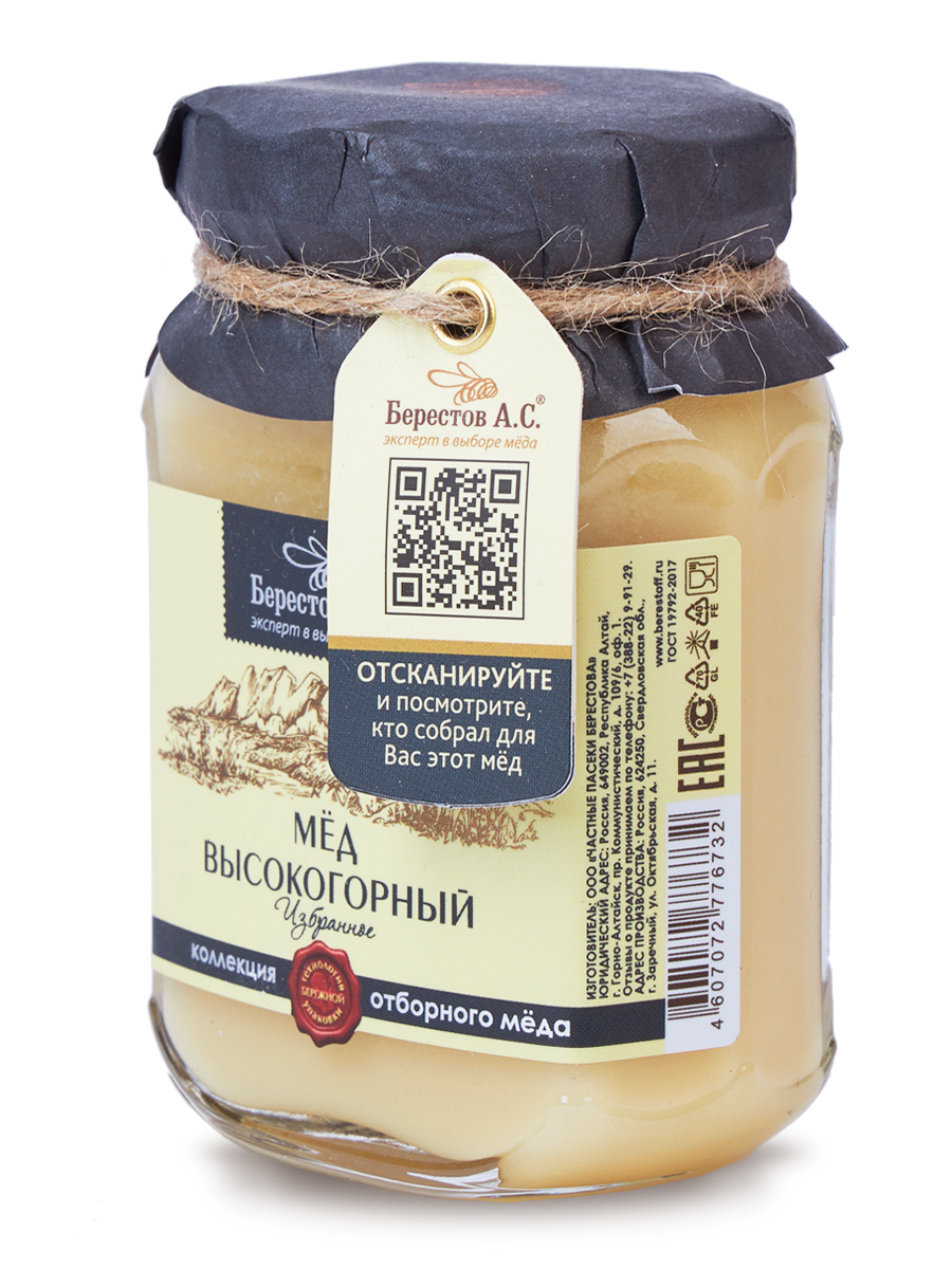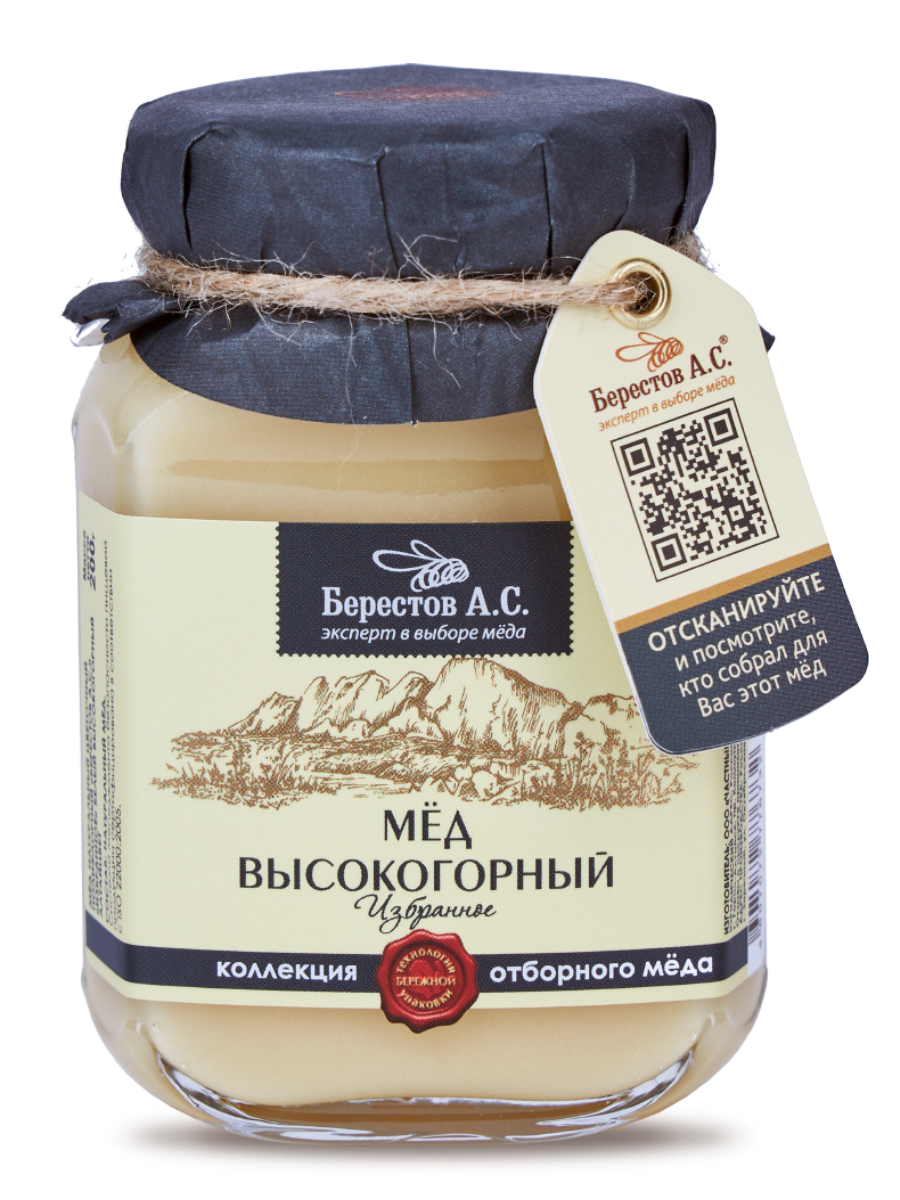 Топовая линейка натурального меда Берестов А.С. Это отборный мед с подтвержденной историей происхождения. Каждая банка имеет индивидуальный номер и QR код, отсканировав который можно увидеть пчеловодов собравших этот мед, и расширенные данные о их пчелохозяйствах.