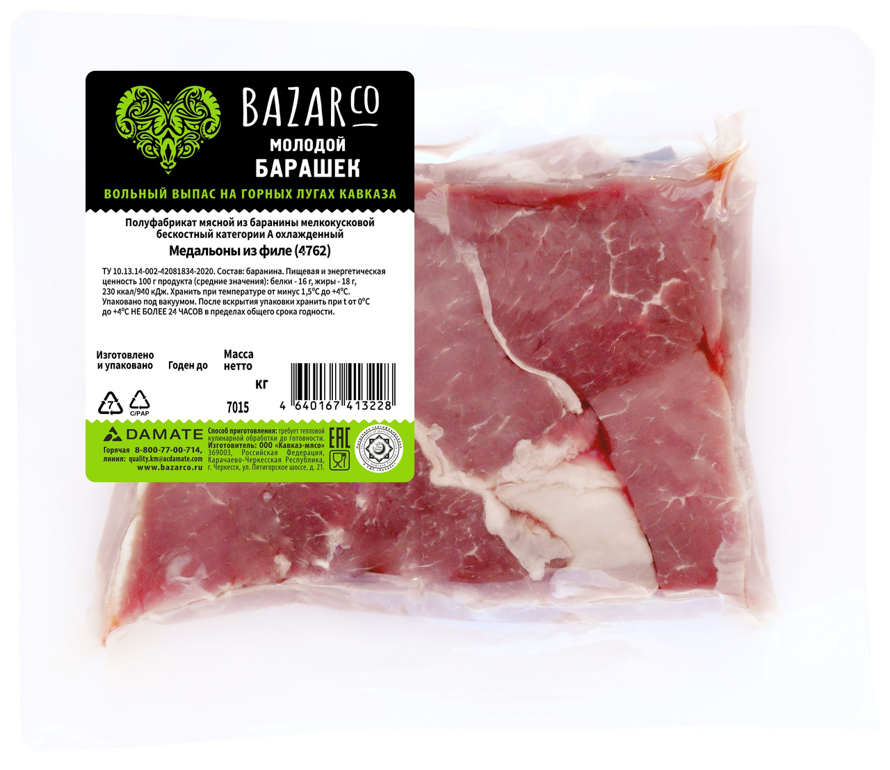 Медальоны из филе баранины Bazarco Халяль охлажденные, 400г