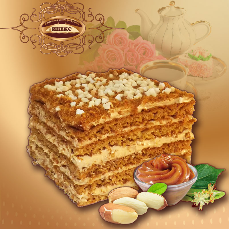 Ароматный торт Медовик из песочно-медового теста с пропиткой и кремом на основе вареного сгущенного молока.
