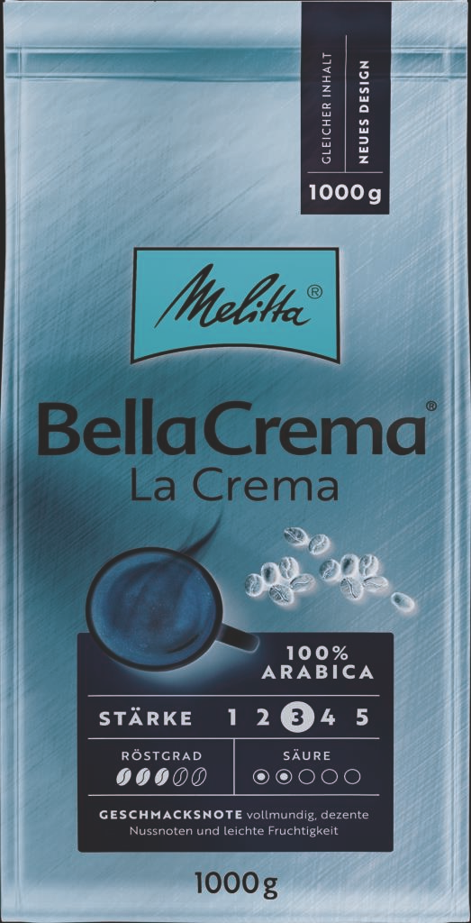 Кофе в зернах Melitta Bella Crema La Crema - мягкий и ароматный кофе для приготовления большой чашки с ароматной пенкой, чтобы Вы могли насладиться кремовым вкусом натурального кофе. Средняя прожарка. Melitta Bella Crema La Crema - предназначен для приготовления кофе в кофеварках и кофемашинах. Идеально сочетается с десертами, сорбетом, сладкими пирожными.