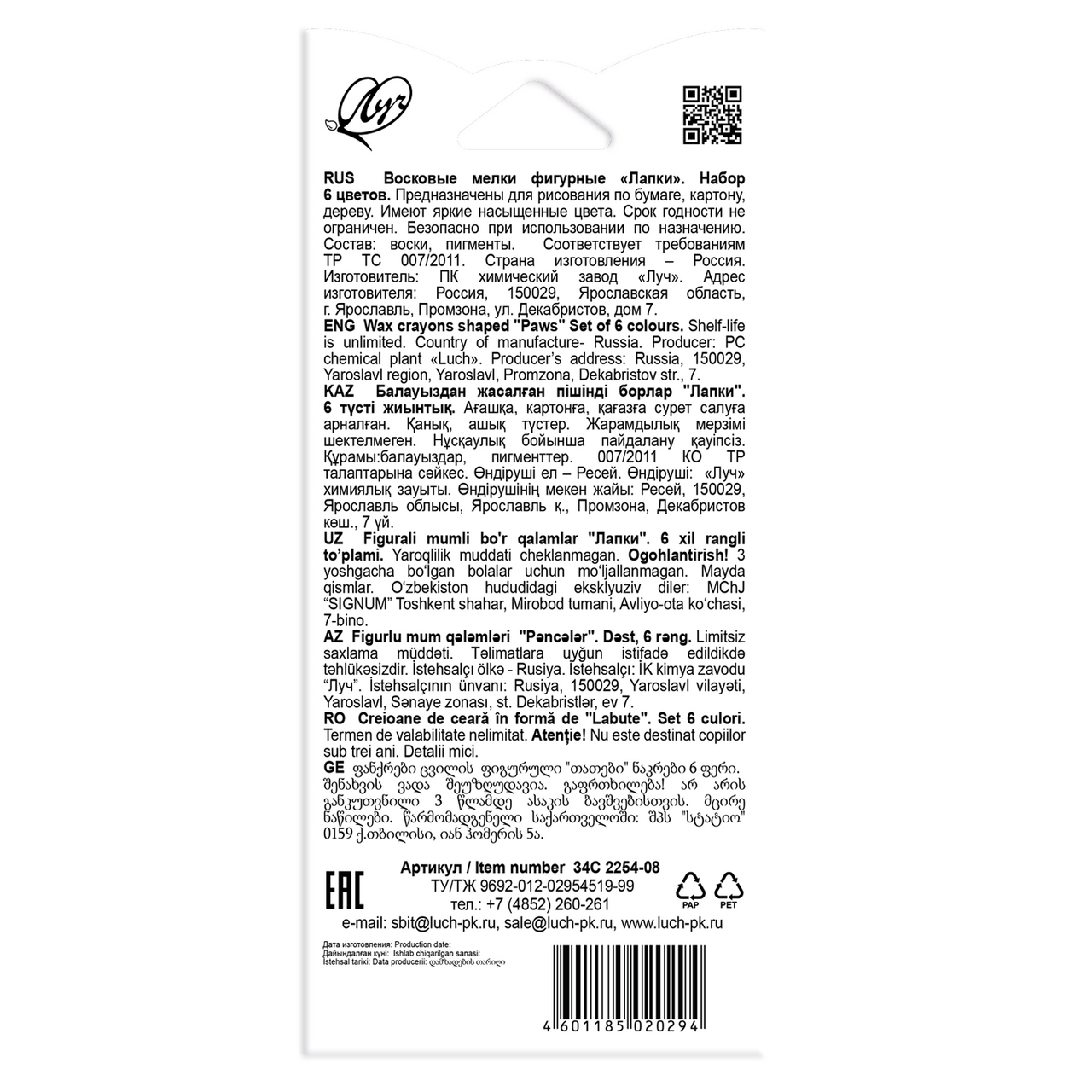 Мелки Луч Кроха Лапки восковые 6 цветов