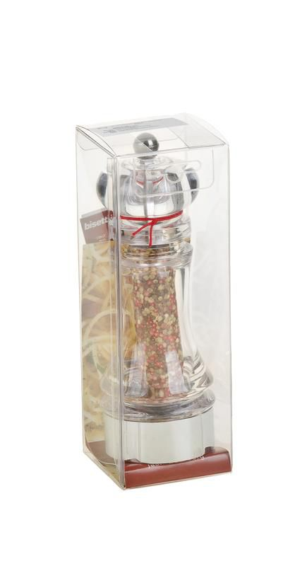 Мельница для перца BISETTI, 18 см – оригинальный аксессуар для кухни от ведущего итальянского производителя. Предназначена для измельчения крупных горошин перца. Перемалывание специй осуществляется с помощью вращения верхней части корпуса.Мельница изготовлена из акрила. Благодаря прозрачному корпусу вы всегда будете видеть, сколько специй осталось в колбе. Свежемолотые специи придадут блюдам изысканный вкус и аромат. Кроме того, стильный дизайн позволит внести изюминку в интерьер кухни. Купить универсальную мельницу для перца BISETTI, 18 см вы можете в торговом центре METRO.Производитель: Италия.Высота: 18 см.Материал: акрил.Срок годности: не ограничено