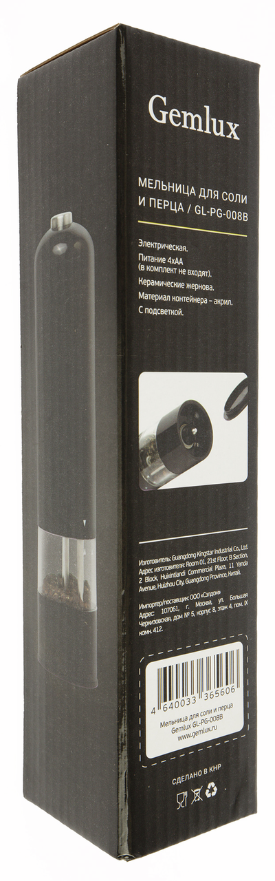 Мельница для соли и перца Gemlux GL-PG-008B