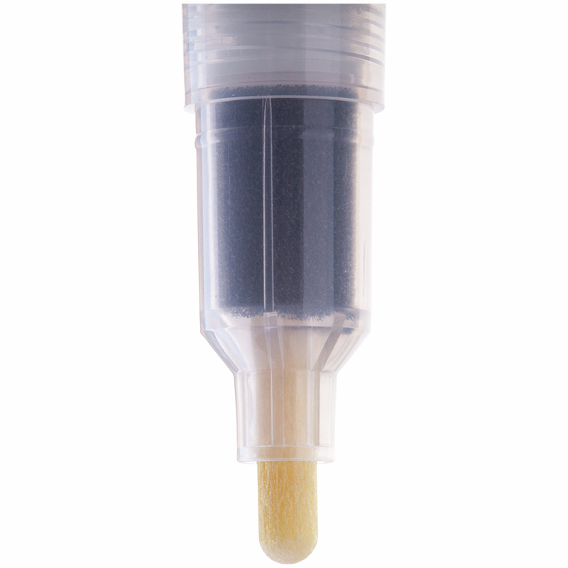 Чернила быстро высыхают на поверхности (спиртовая основа мела быстро сохнет и не дает ему размазываться на любых гладких материалах). Ровная непрерывная подача жидкого мела к пишущему узлу. С любой гладкой поверхности маркер мел хорошо стирается влажной или сухой губкой.
