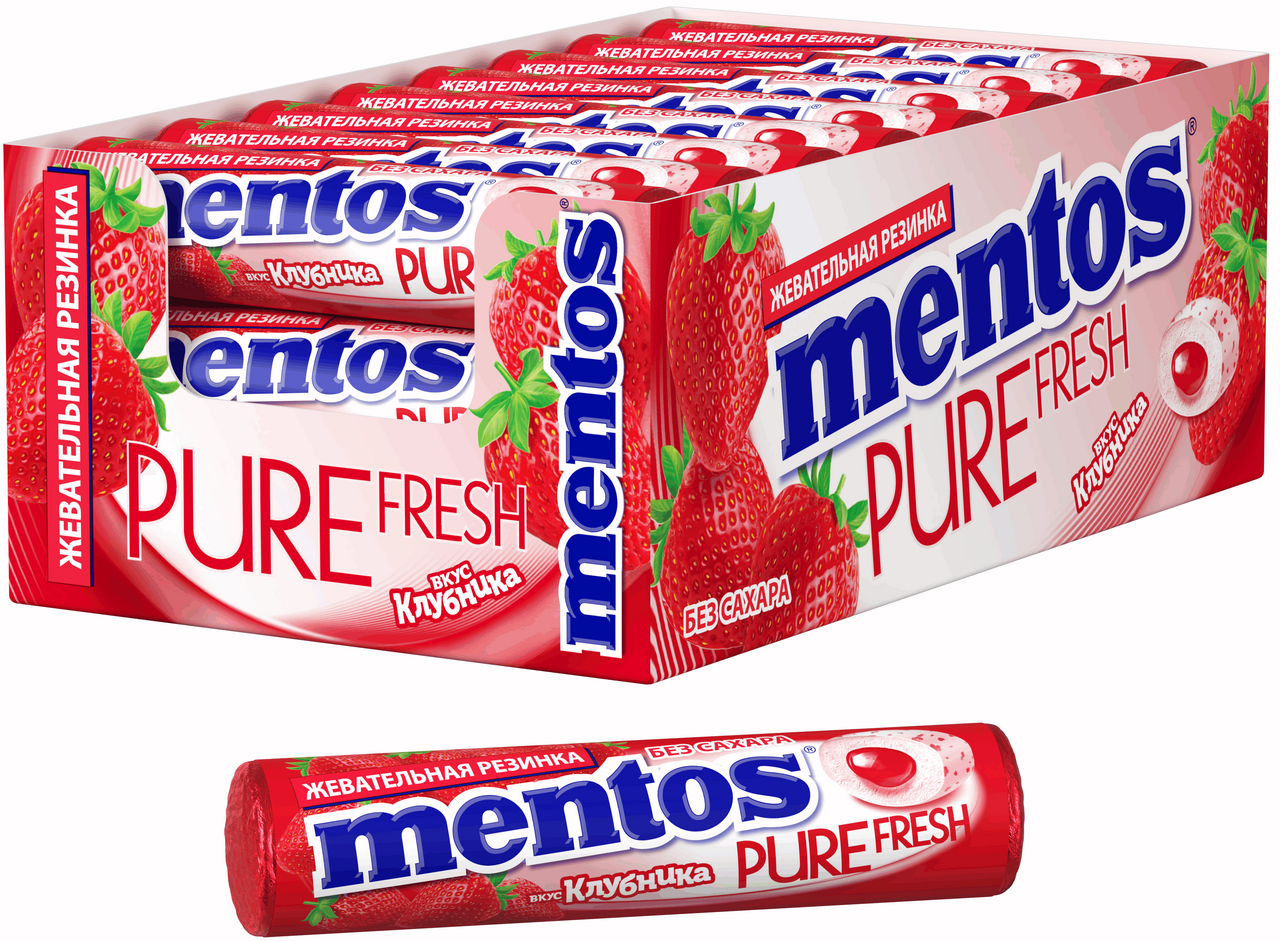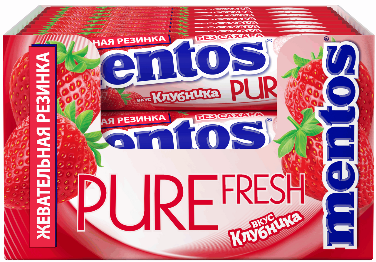 Mentos Pure White — нежно-розовая жевательная резинка с насыщенным вкусом и ароматом клубники, который держится очень долго. Внутри каждой подушечки — жидкое наполнение, в составе содержится экстракт зеленого чая. Такая жевательная резинка позволит быстро освежить дыхание после пищи.