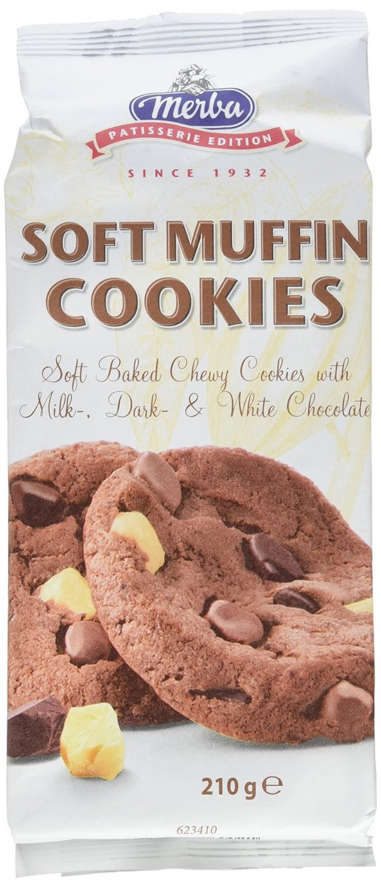 Печенье Мерба Soft Muffin Cookies с молочным, темным и белым шоколадом, 210г