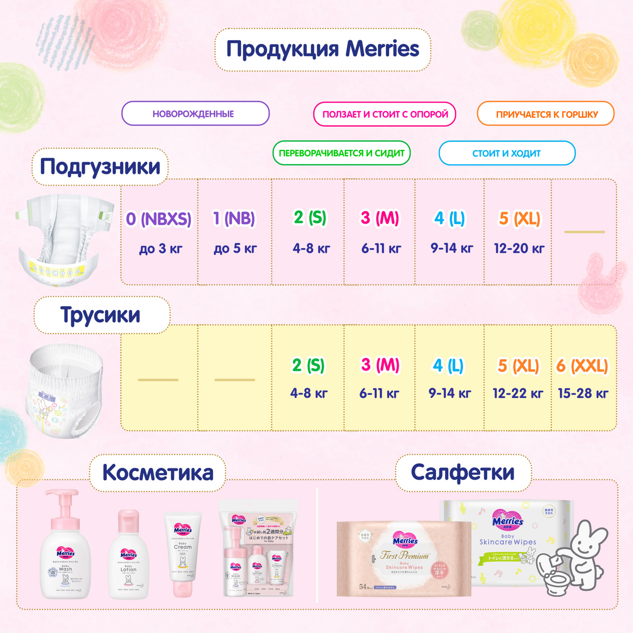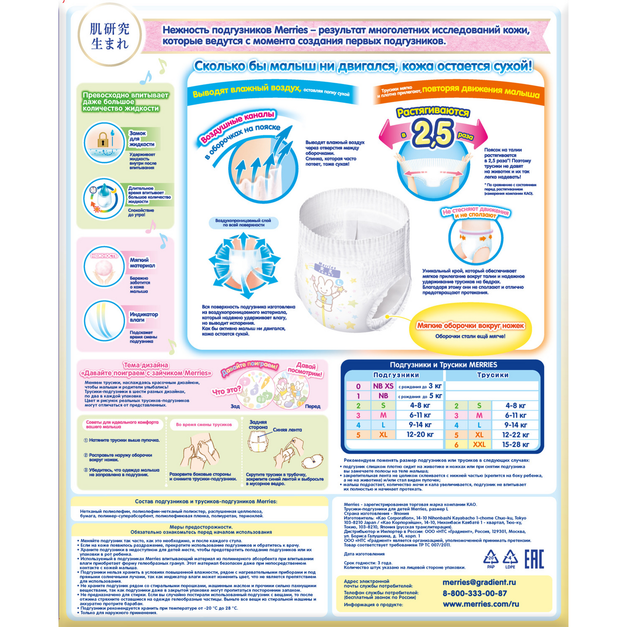 Дышащие трусики Merries идеально подойдут малышу, который начинает активно двигаться. Крой трусиков Merries разработан с учетом анатомических особенностей малыша: Хорошо сидят на талии и не сползают; Сохраняют форму даже когда трусики уже наполнены; Не создают дискомфорта между ножек. Merries заботится о коже вашего ребенка! Уникальная технология трех дышащих слоев отлично выводит прелый воздух из подгузника, что позволяет попке малыш�� всегда оставаться сухой и предотвращает появление опрелостей и раздражений на нежной коже.