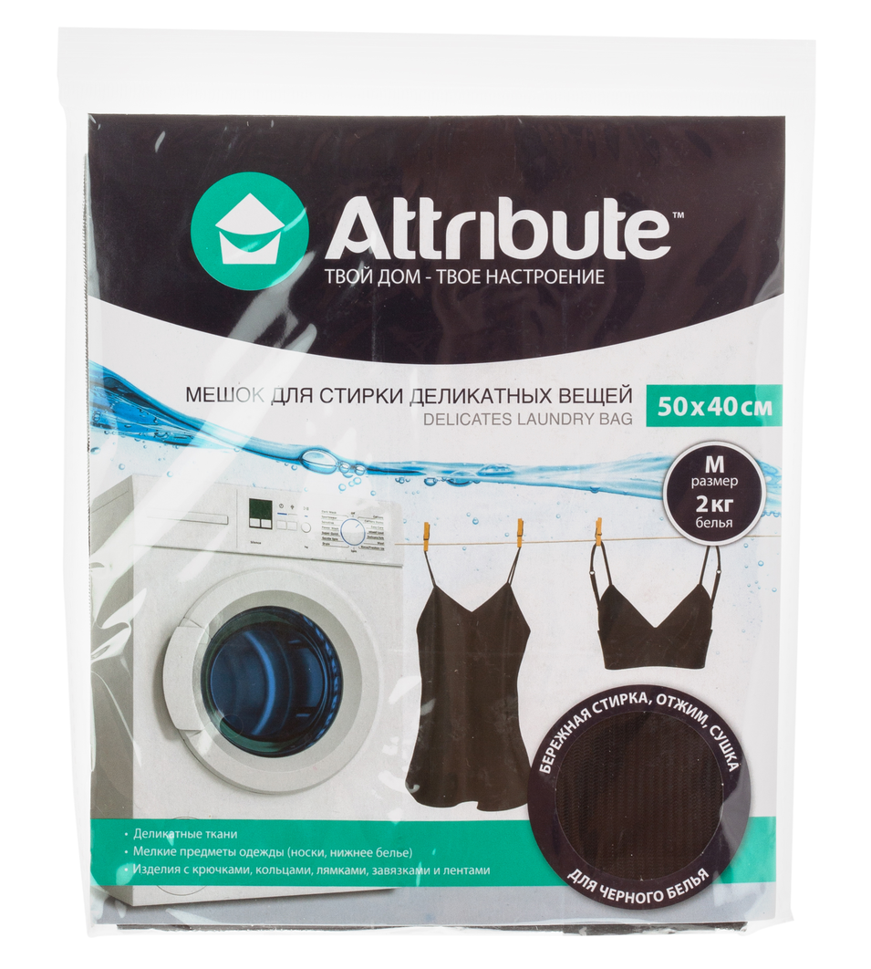 Мешок Attribute для деликатной стирки черного белья, 50 x 40 х 0,5 см — отличное решение по уходу за вещами. Он используется в качестве дополнительной защиты одежды из деликатных тканей: шелковых комбинаций, кружевных бюстгальтеров, маек, блузок. При стирке-автомат белье может повредить стиральная машина, например, при отжиме, ополаскивании и других режимах. Специальная структура мешка не оставляет катышков, затяжек. Она может также предотвратить растяжение тканей при отжиме и полоскании. Мешок для стирки станет спасением для белья, которое может испортиться всего после первого цикла стирки. С таким изделием можно не беспокоиться о потере носков и других мелочей. Белье просто помещается в мешок, а затем — в стиральную машину. Такой подход �� стирке значительно продлевает срок службы одежды, защищает ее от износа и надолго сохраняет ее аккуратный внешний вид. Модель выполнена из прочного материала, стойкого на разрыв. Он не портится после многократных стирок, не растягивается и сохраняет свою конусообразную форму. Оптимальные размеры позволяют за один цикл отстирать большую часть белья.