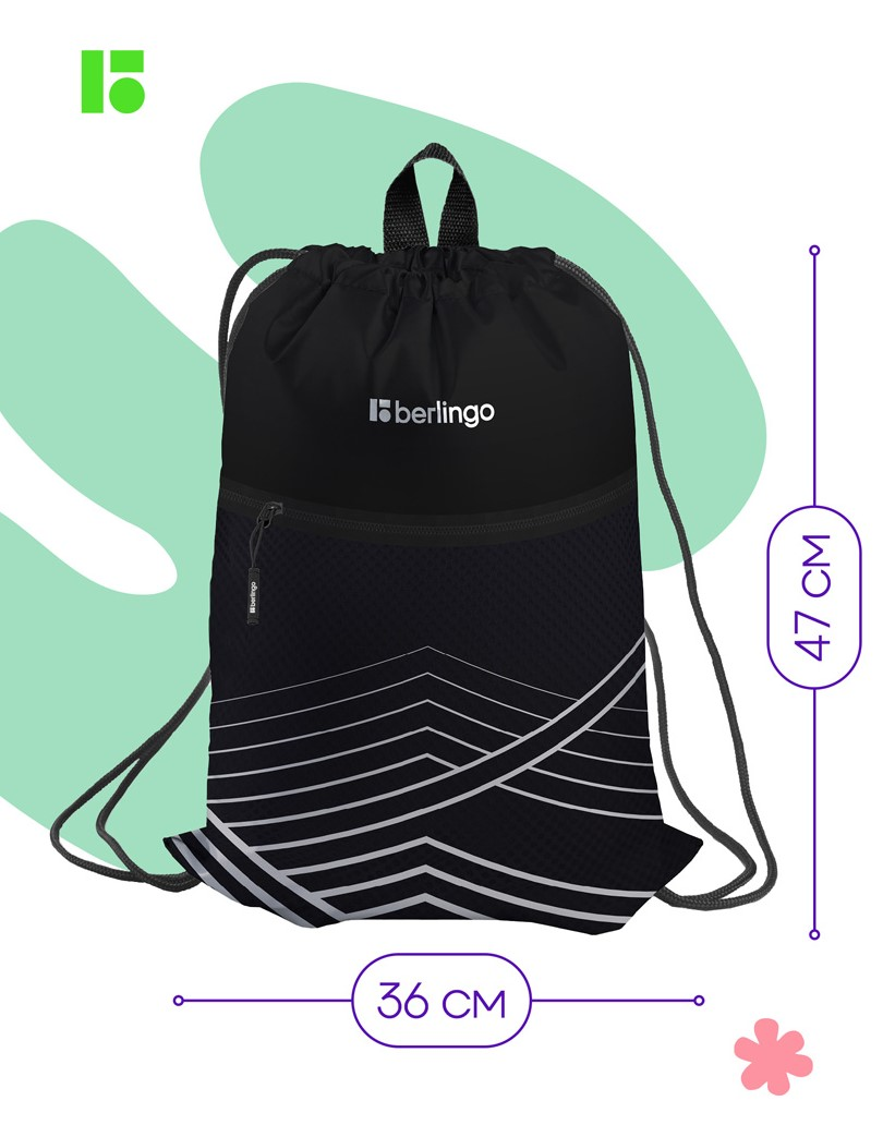 Вместительный мешок для обуви Berlingo оснащён широкими шнурками и вместительным передним карманом на молнии. Размер изделия 460*360мм. Модель изготовлена из плотного износостойкого полиэстера. Световозвращающие элементы обезопасят в тёмное время суток. Мешок идеален как для зимней обуви, так и для спортивной экипировки. Индивидуальная упаковка в пакет.