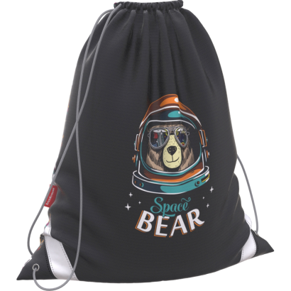 Мешок для обуви скейт Erich Krause Медведь, 43x36см увеличенного размера 365х440 мм со светоотражающими элементами. Материал: износо- морозостойкий водоотталкивающий 100% полиэстер.