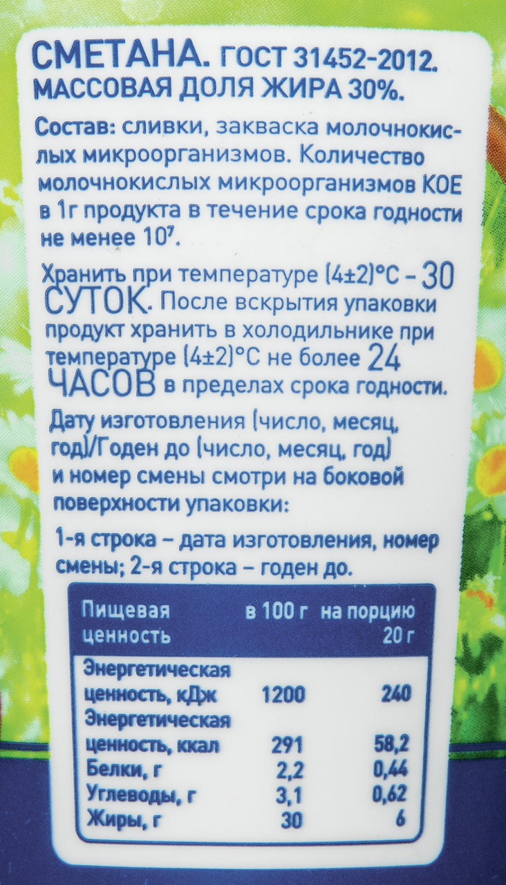 - Жирность, % 30