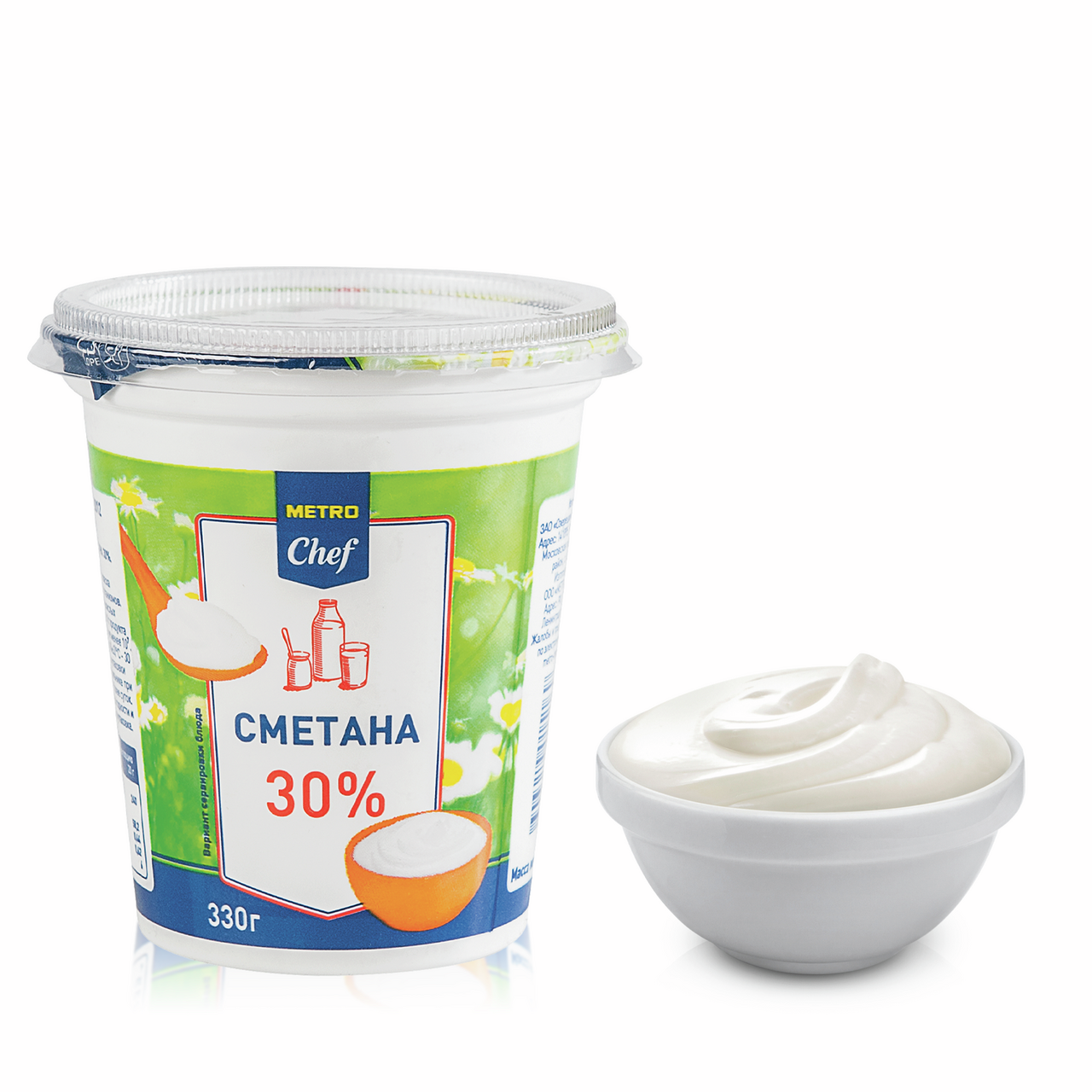 Сметана METRO CHEF 30%, 330 г – это особый продукт. Cметана по своим вкусовым качествам очень похожа на деревенскую, а по текстуре и плотности ничем от нее не отличается. Ее можно использовать для приготовления различных блюд, добавлять в тесто и кремы, салаты. Подавать к блинчикам, оладьям, сырникам, вареникам и пельменям, добавлять в первые и вторые блюда. Приобрести сметану METRO CHEF 30%, 330 г можно в торговом центре METRO.Бренд: Metro Chef.Производитель: Metro C&C.Страна: Россия.Тип продукта: сметана.Жирность: 30%.Вид упаковки: пластиковый стакан.Условия хранения: при температуре от +2С до +10С.Срок хранения: 30 суток.Вес: 330 г.