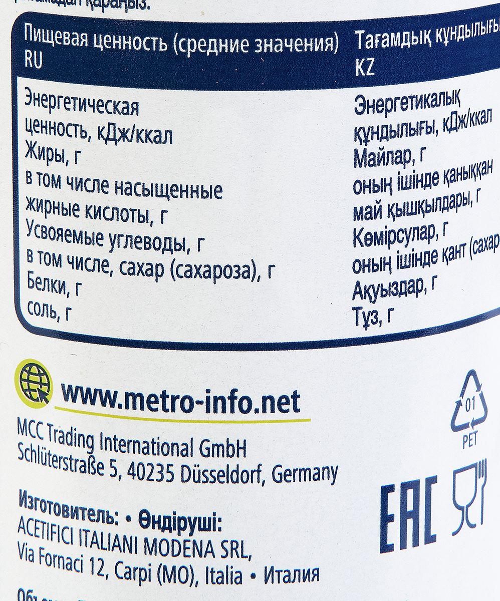 METRO Chef Бальзамический уксус из Модены производится по классической итальянской рецептуре. Уксус станет чудесной заправкой для классического греческого салата, Капрезе или Цезаря. Продукт также отлично сочетается с рукколой, цуккини, свеклой, томатами, картофелем, маслинами, козьим сыром. Особенно хорошо бальзамический уксус дополнит блюда из морепродуктов, полностью раскрывая их вкус. Кроме того, уксус может играть роль маринада для птицы или красного мяса. Продукт является прекрасной профилактикой заболевания сердца и предотвращает возникновение раковых клеток.