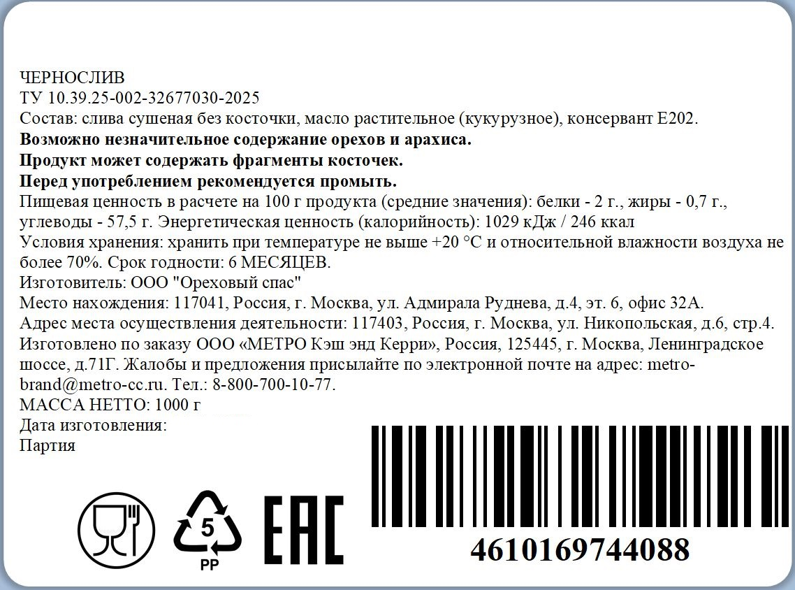 Плоды сливы сушеной без косточки (чернослив), масло растительное (кукурузное), консервант Е202.