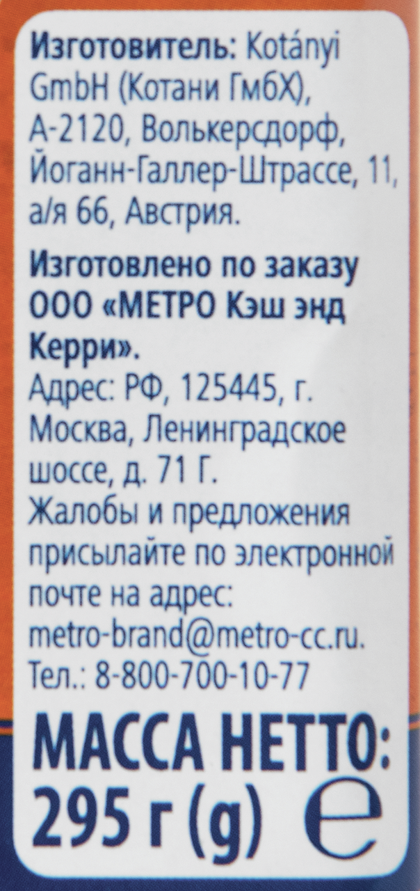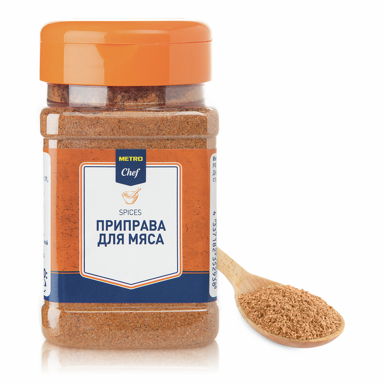 Приправа METRO Chef для мяса, 295 г — смесь, состоящая из разных сушеных трав, специй и пряностей. Она применяется для придания блюдам из мяса особого аромата и вкуса. Если вы добавите в еду такую приправу, вы не только подчеркнете вкусовые качества пищи, но и принесете пользу своему организму — обогатите его витаминами, макро- и микроэлементами. Пряная смесь для мяса стимулирует работу сердечно-сосудистой и пищеварительных систем, укрепляет иммунитет, улучшает настроение, выводит токсины и является профилактикой ОРВИ и простудных заболеваний. Используя данную смесь, вы сможете с легкостью приготовить маринад или соус. Ее также добавляют в фарш, копченое и вяленое мясо. Если вы решили запечь мясо в духовке или тушить его, в таком случае специи лучше добавлять за пару минут до готовности, а в копченое мясо и фарш — до начала приготовления. Приправа подходит для любого видов мяса.