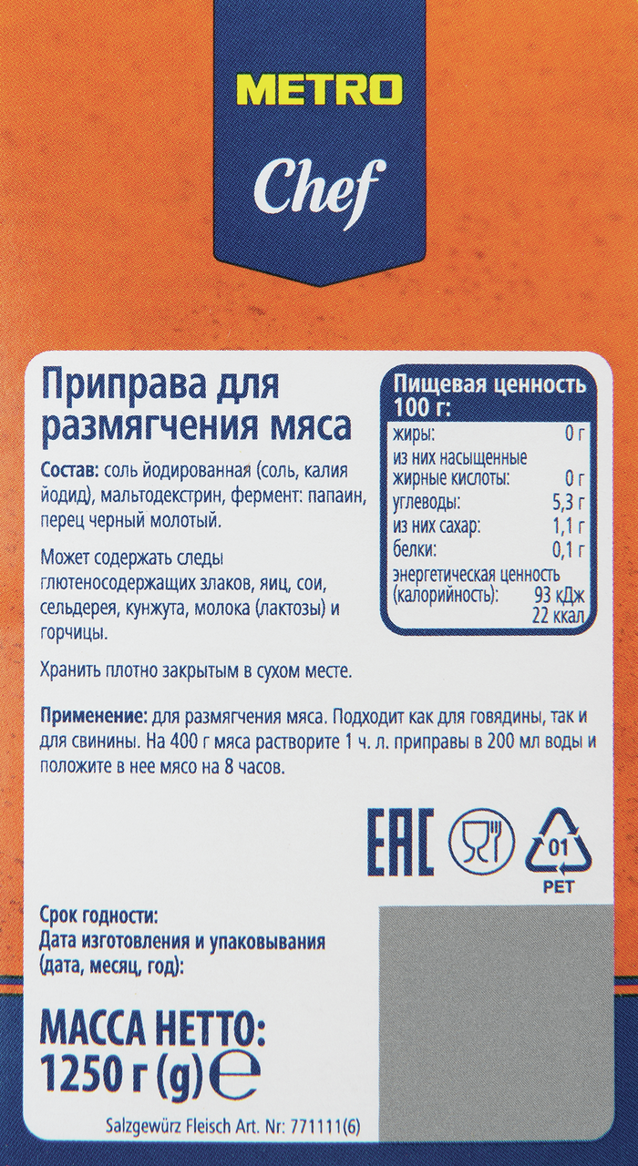METRO Chef Приправа Для размягчения мяса, 1.25кг
