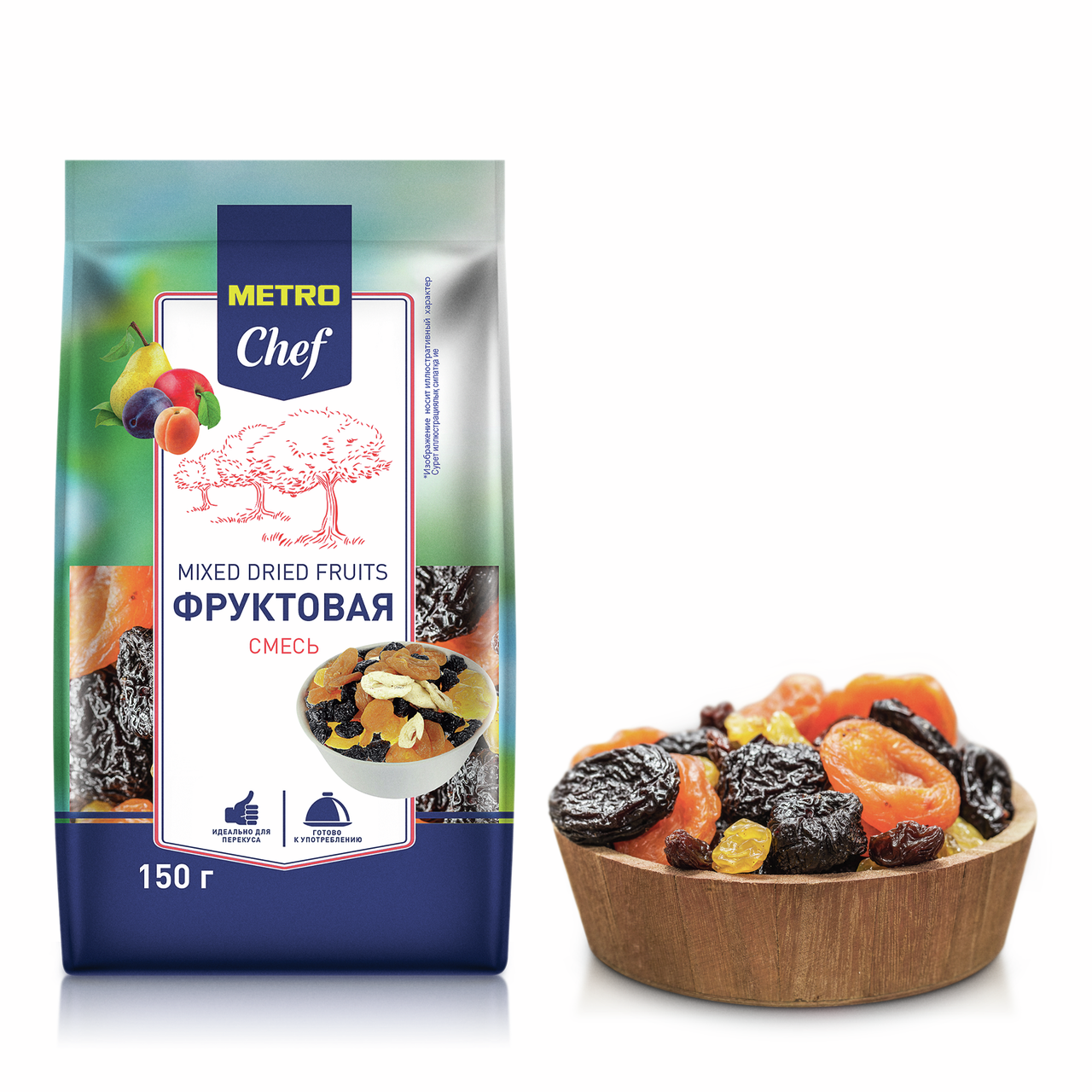Смесь из сухофруктов и цукатов METRO Chef укрепит иммунную систему, повысит уровень гемоглобина в крови, придаст сил, энергии, а также положительно повлияет на работу сердечно-сосудистой системы, так как сухофрукты очень богаты калием. Такая витаминная смесь полезна для работы мозга.