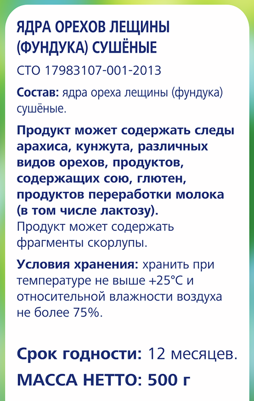 Ядра сушеной лещины (фундука) имеют калибр 13-15 и удобны в использовании. В первую очередь, их употребляют просто так, а также используют в различных блюдах. Дроблёным фундуком можно украсить любой десерт или посыпать салат. Также можно размолоть и использовать как муку для выпечки.