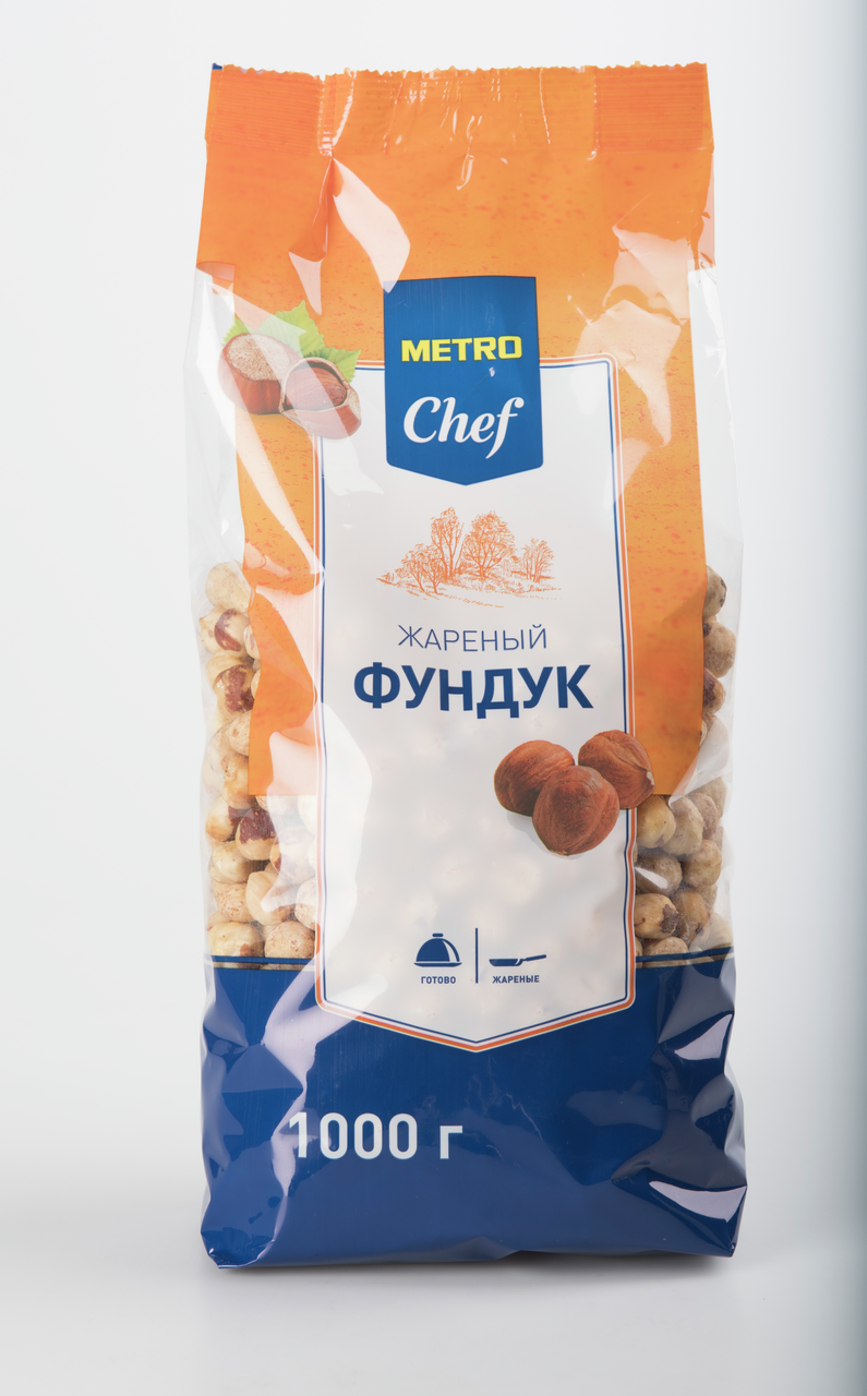 METRO Chef Фундук жареный 1 кг - это вкусный, питательный орех, второе название которого - лесной. Очищенный от скорлупы и бережно обжаренный фундук. Обладает ярким ореховым ароматом и тонким сладковатым вкусом. Сытное и полезное лакомство и превосходный снек. Лесной орех идеально подходит для выпечки, десертов, салатов и пикантных закусок.