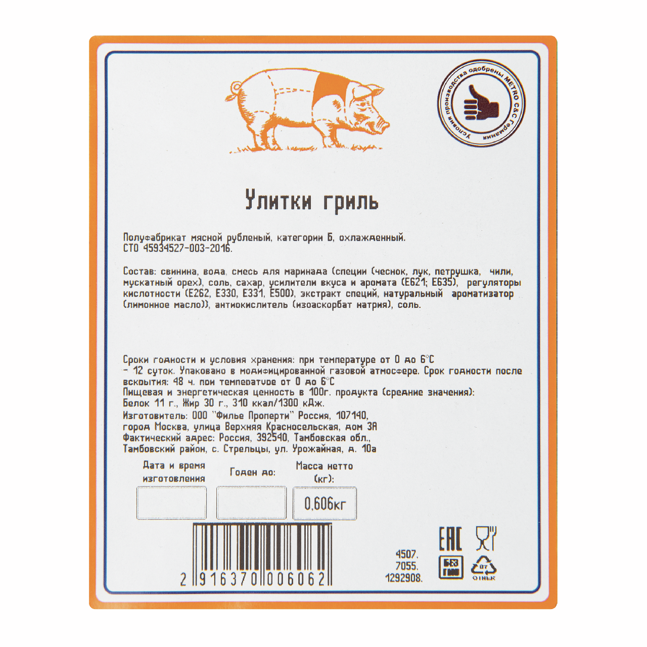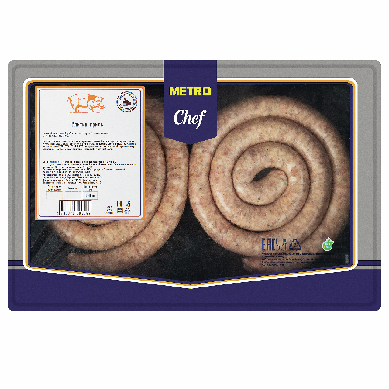 METRO Chef Колбаски улитки из свинины гриль охлажденные, ~600г — прекрасный выбор для любителей барбекю. Улитки-гриль подходят для жарки на решетке мангала или сковороде. После приготовления колбаски становятся сочными и приобретают аппетитный аромат дымка.