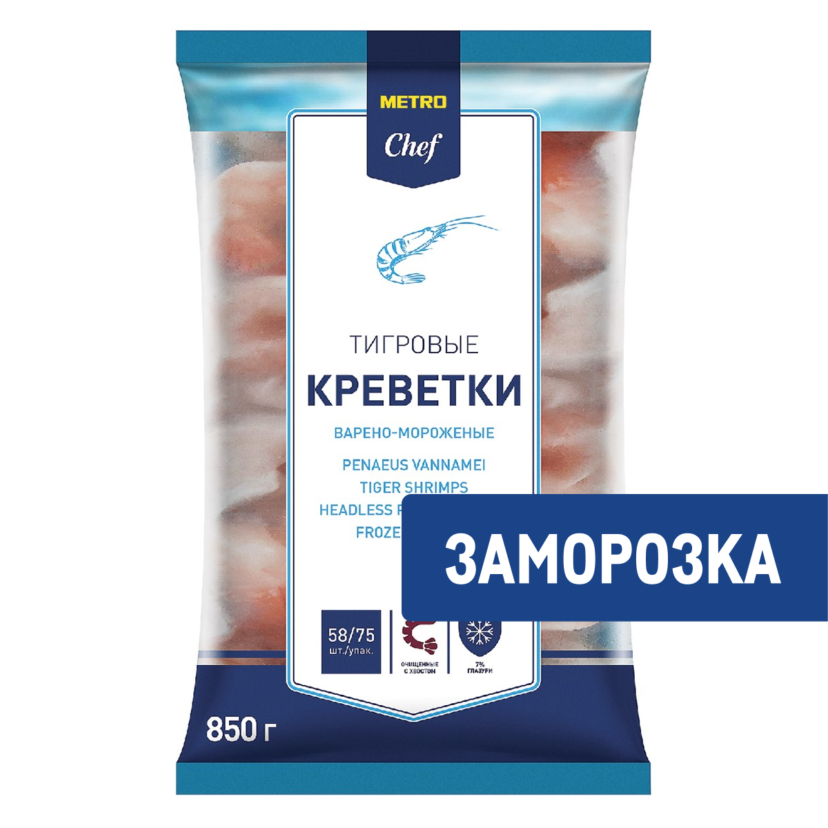 METRO Chef Креветки белоногие 31/40 очищенные варено-мороженые, 850г